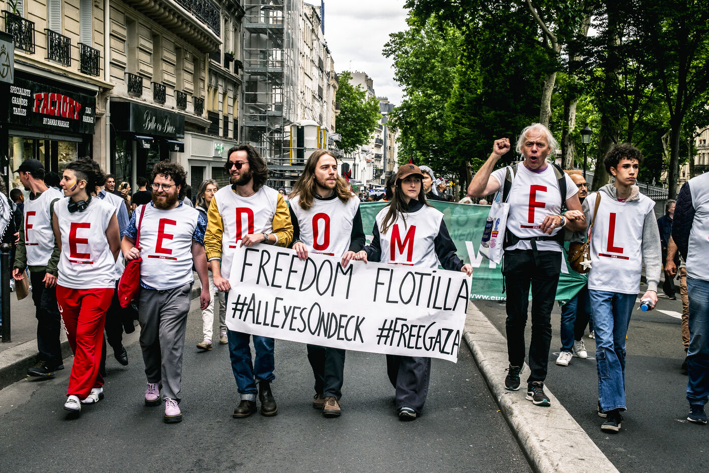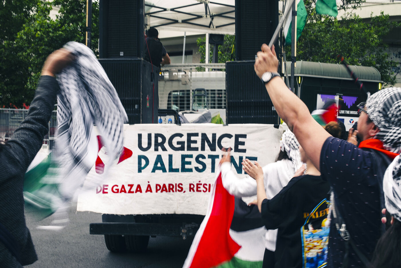 A march took place in Paris on June 7, 2025, to denounce the ongoing genocide in Gaza and the war crimes committed by the State of Israel in the Gaza Strip and the West Bank. It was also held to protest against the threat of dissolution against the Urgence Palestine collective.