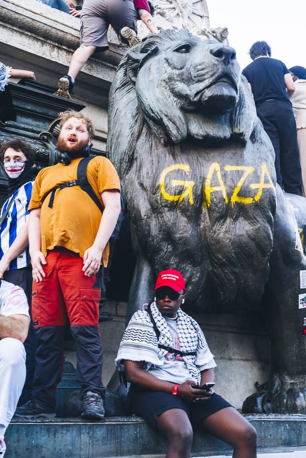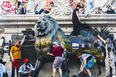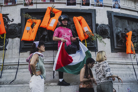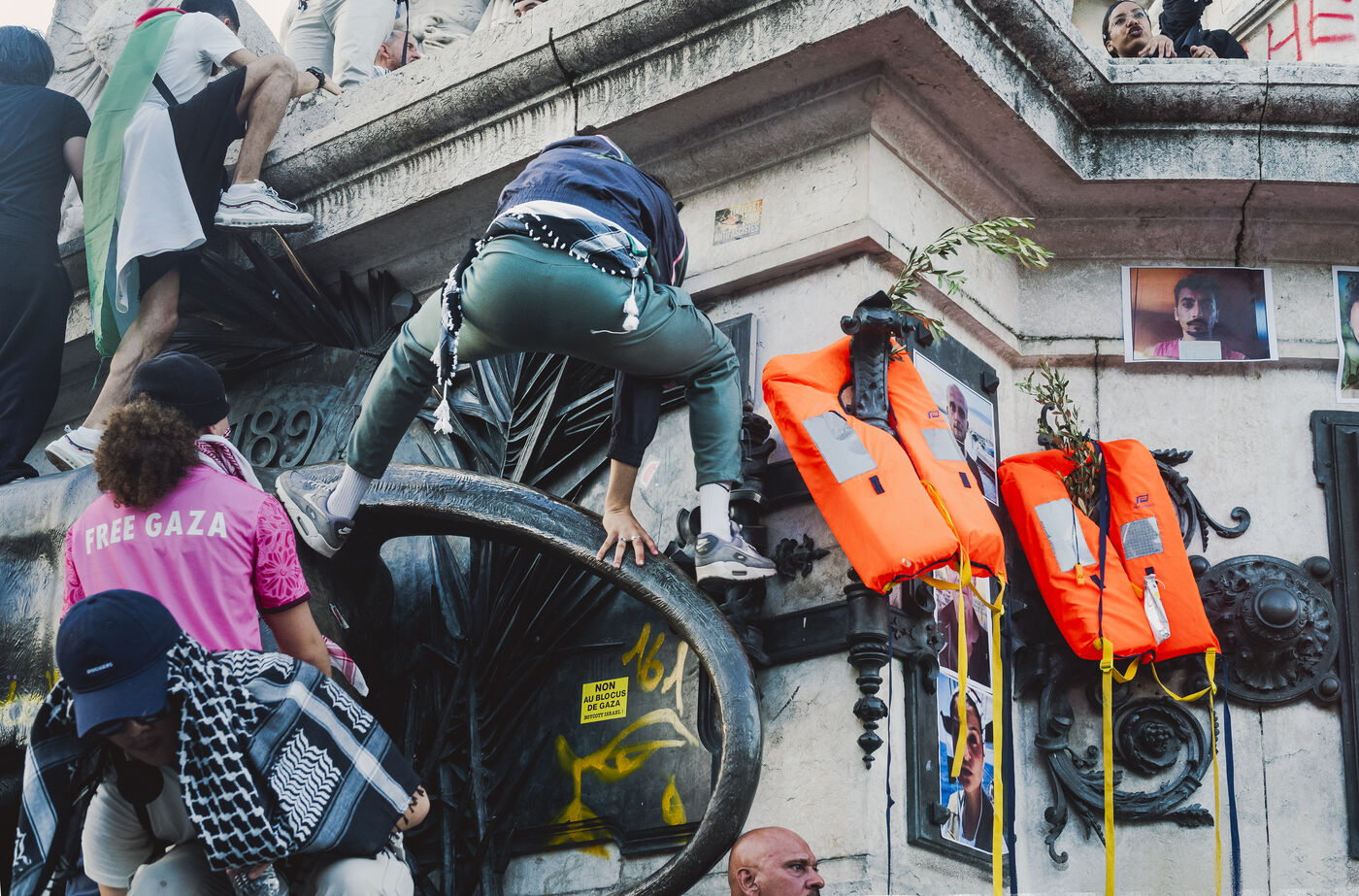 Un rassemblement s'est tenu place de la République à Paris, le 12 juin 2025, en soutien au bateau humanitaire intercepté illégalement par Israël.