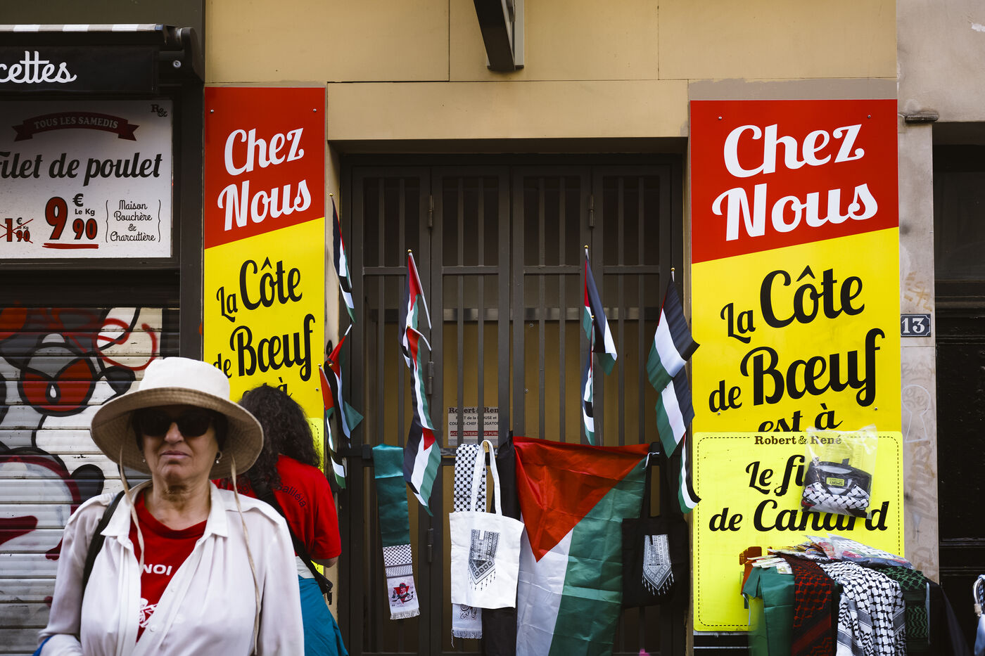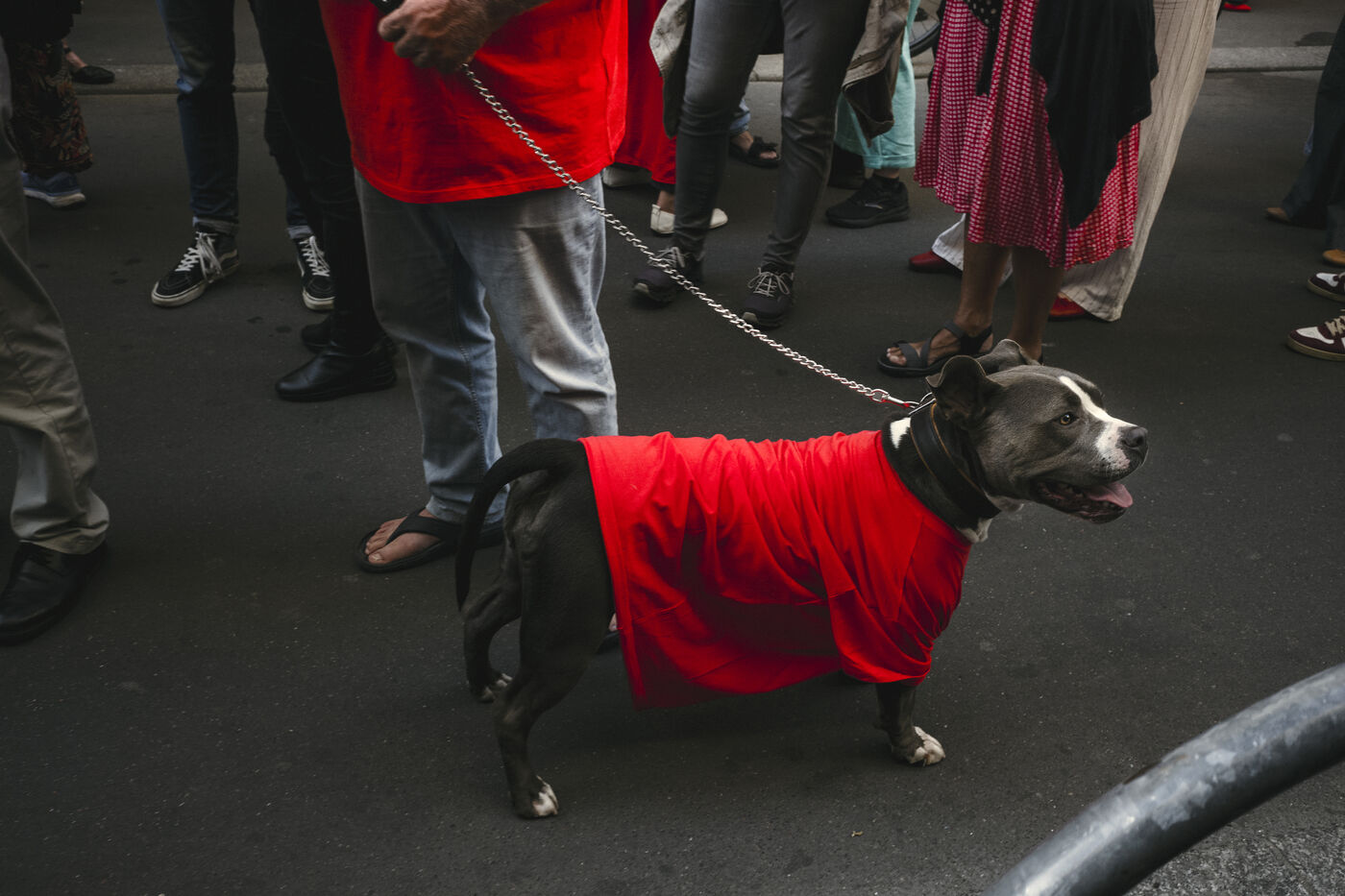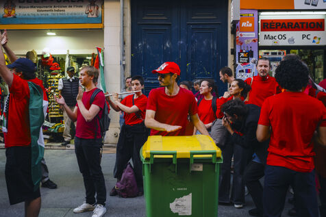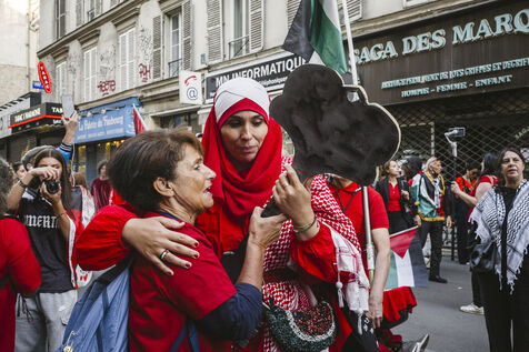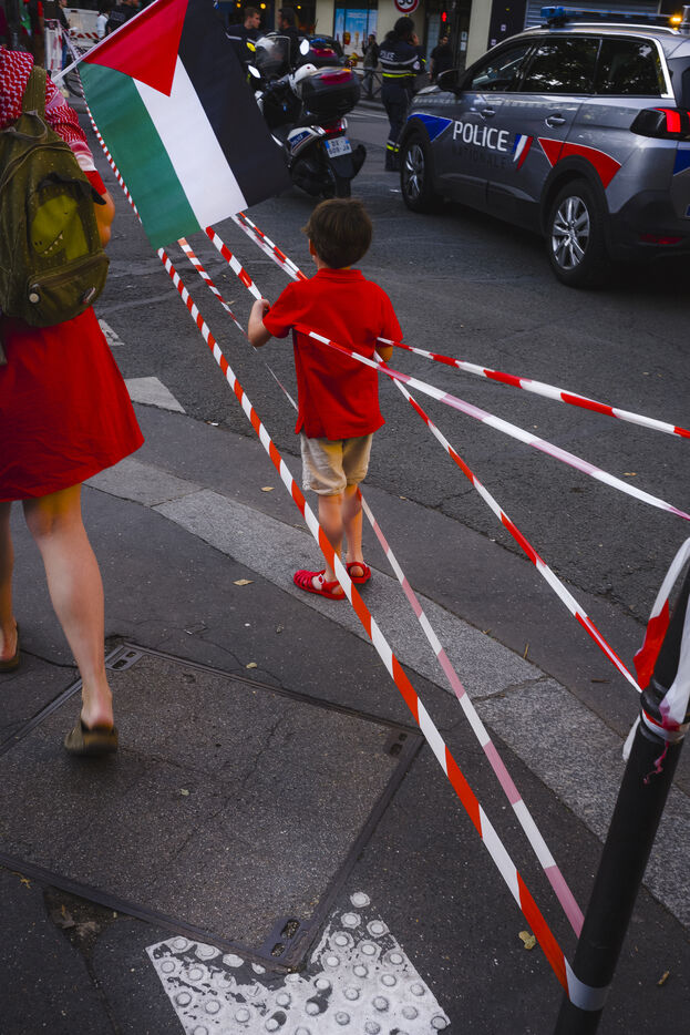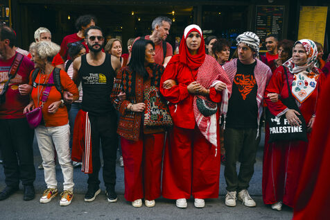 Since October 2023, the population of the Gaza Strip has been subjected to relentless bombardment by the Israeli army. To symbolize all the red lines that have been crossed, protesters dressed in red marched in support of Palestine on Tuesday, October 8, 2025, in Paris.