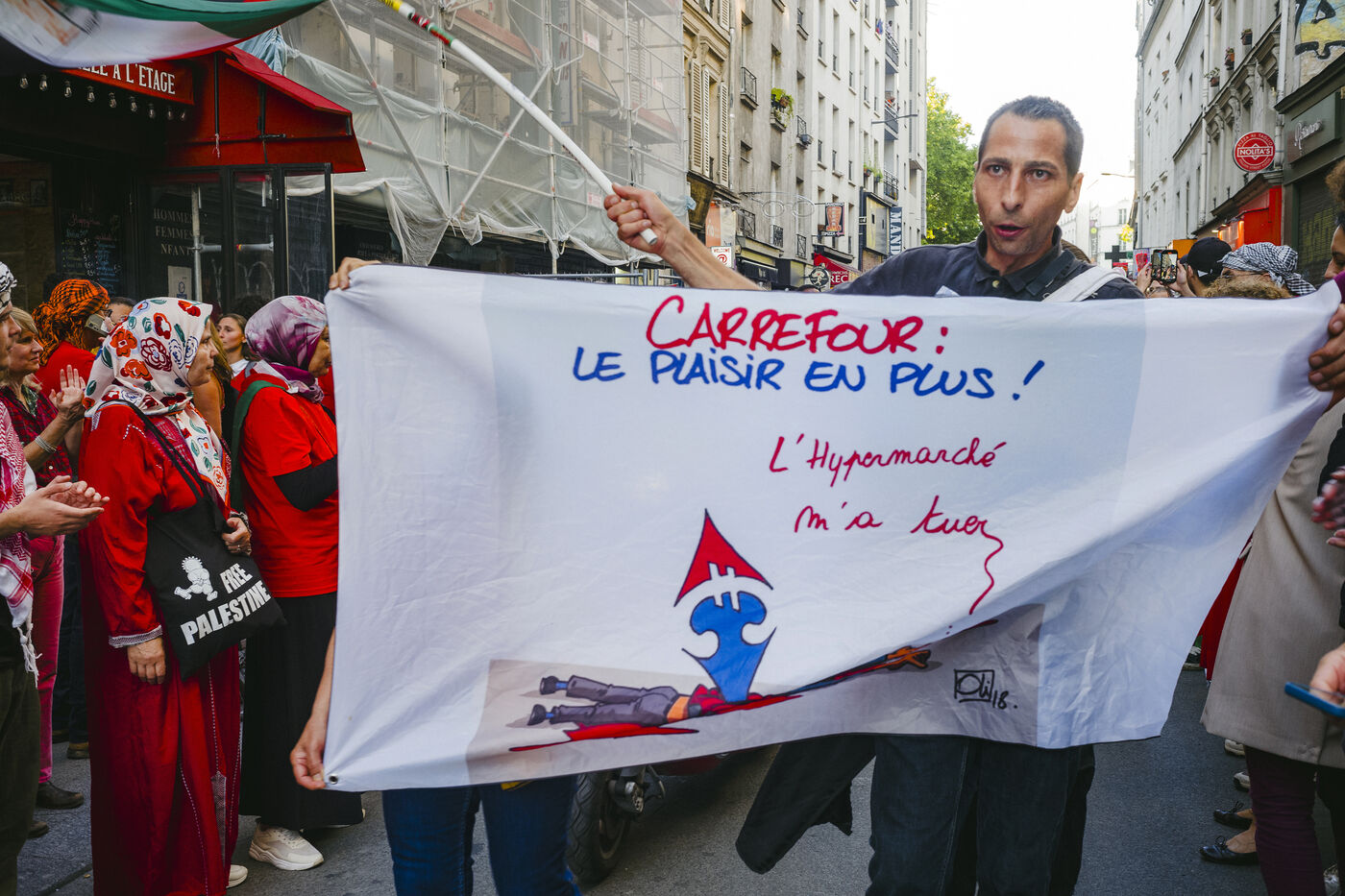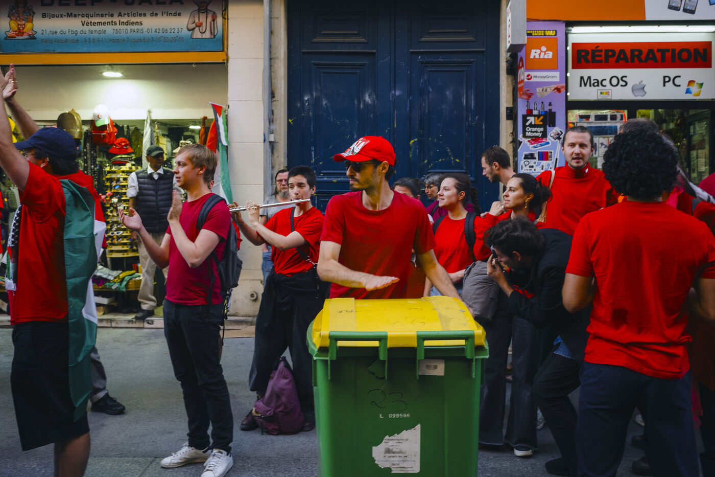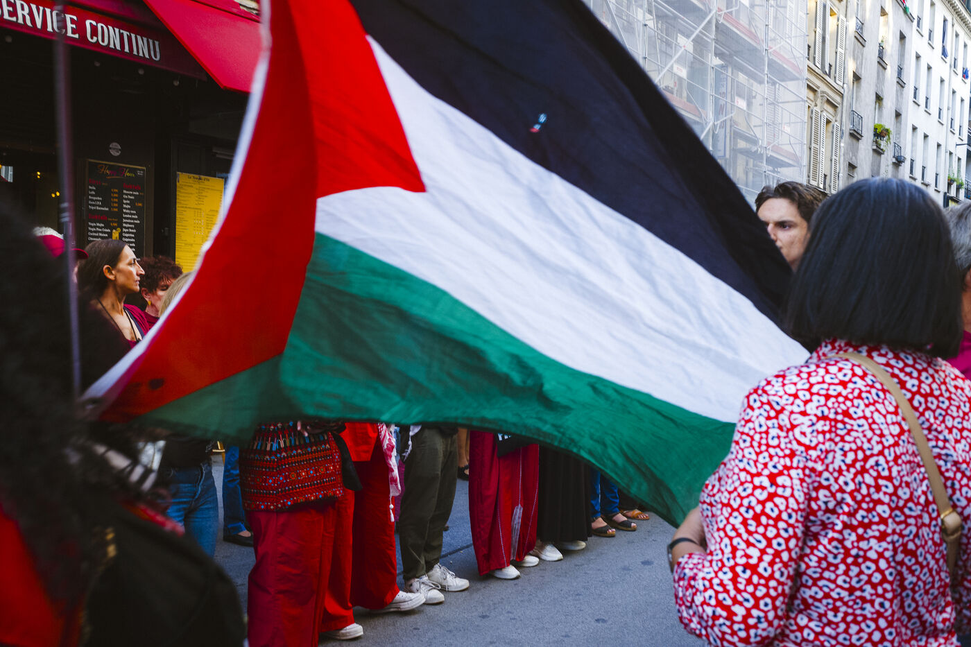 Depuis octobre 2023, la population de la bande de Gaza subit des bombardements incessants de la part de l’armée israélienne. Pour symboliser toutes les lignes rouges franchies, des manifestants habillés de rouge ont défilé en soutien à la Palestine, mardi 8 octobre 2025 à Paris.