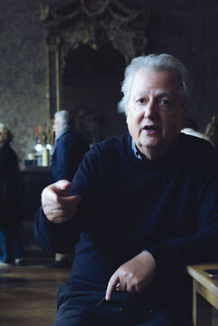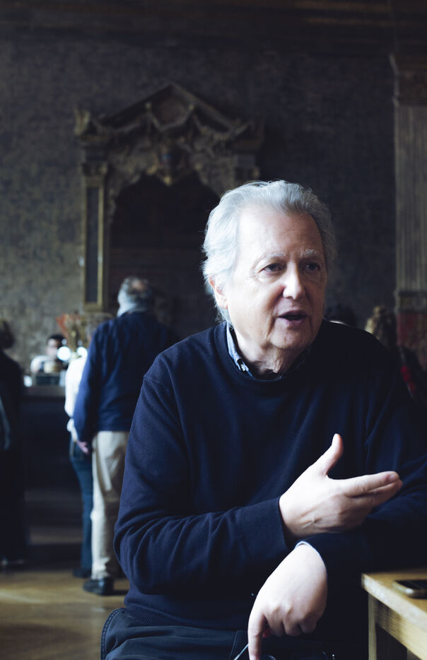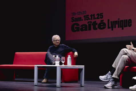 Portrait of Pierre Haski, president of Reporters Without Borders, during the NGO's 40th anniversary celebrations of its fight for press freedom, at the Gaîté Lyrique in Paris on 15 November 2025.