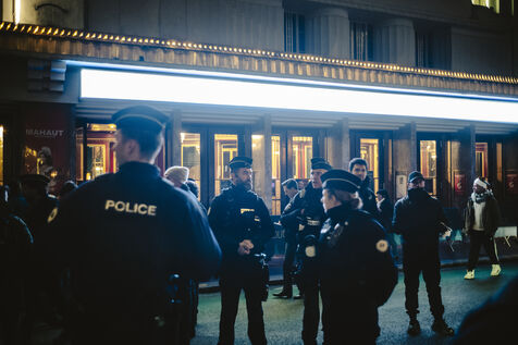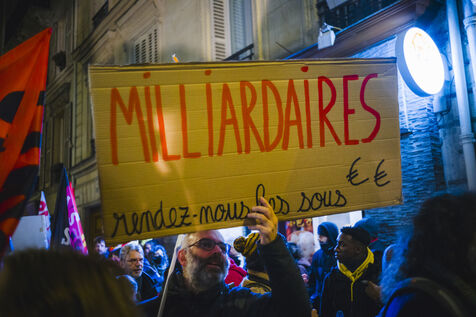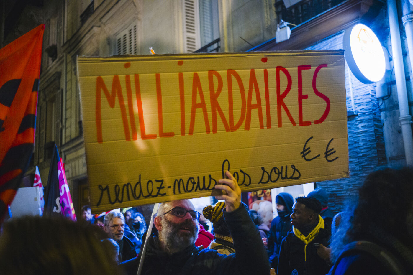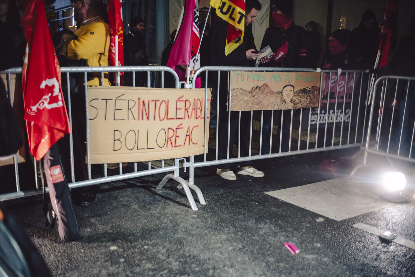 Several collectives and trade unions gathered in front of the Folies Bergère theatre in Paris on Thursday, 4 December 2025, to protest against the gala co-founded by the ultra-conservative and far-right billionaire Pierre-Edouard Stérin.