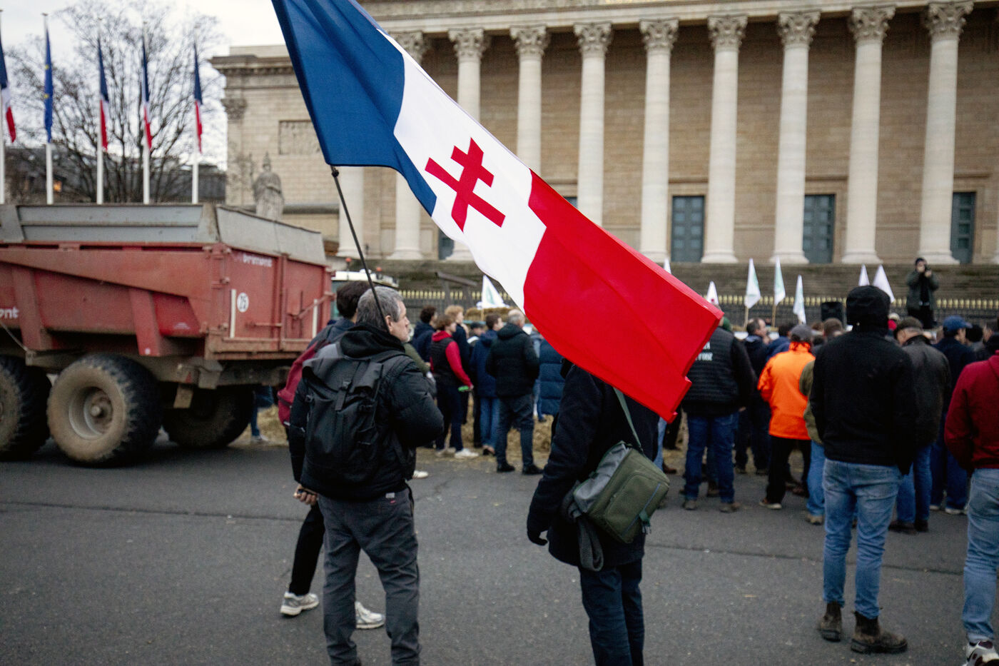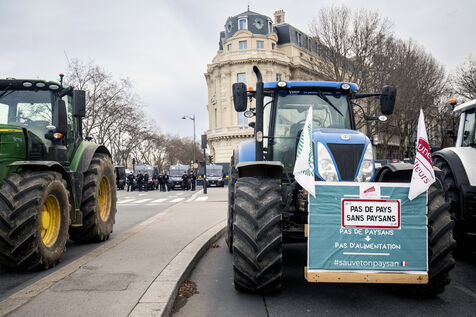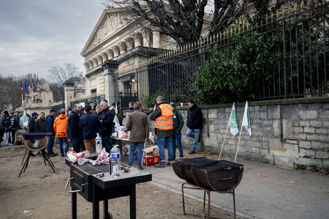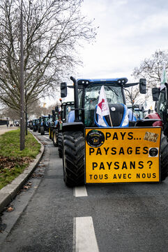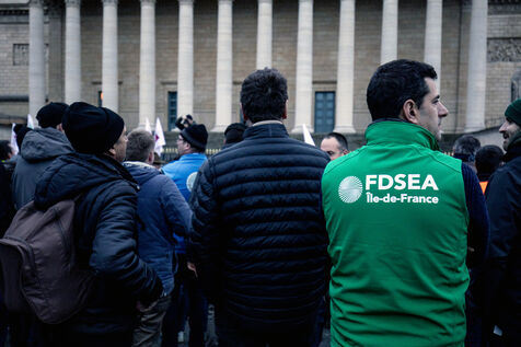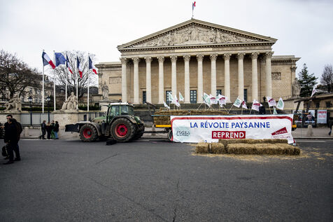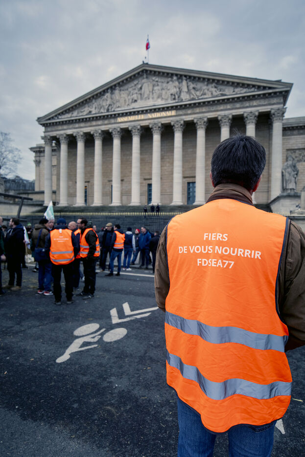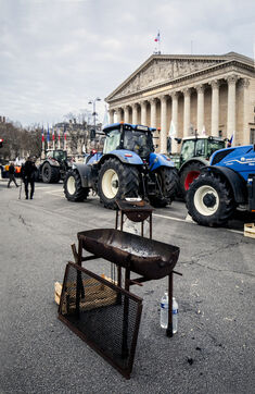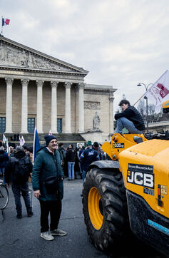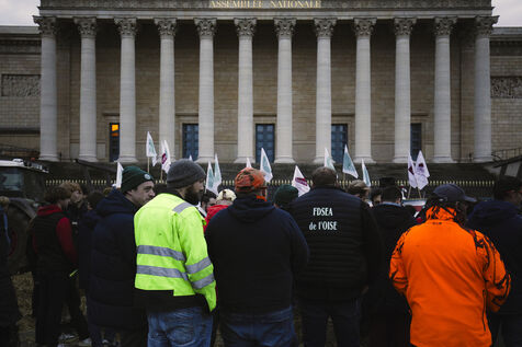 A demonstration by farmers from the National Federation of Farmers' Unions of Ile-de-France and Young Farmers was held on Tuesday, January 13, 2026, in front of the Palais Bourbon, to denounce the European agreement on Mercosur.