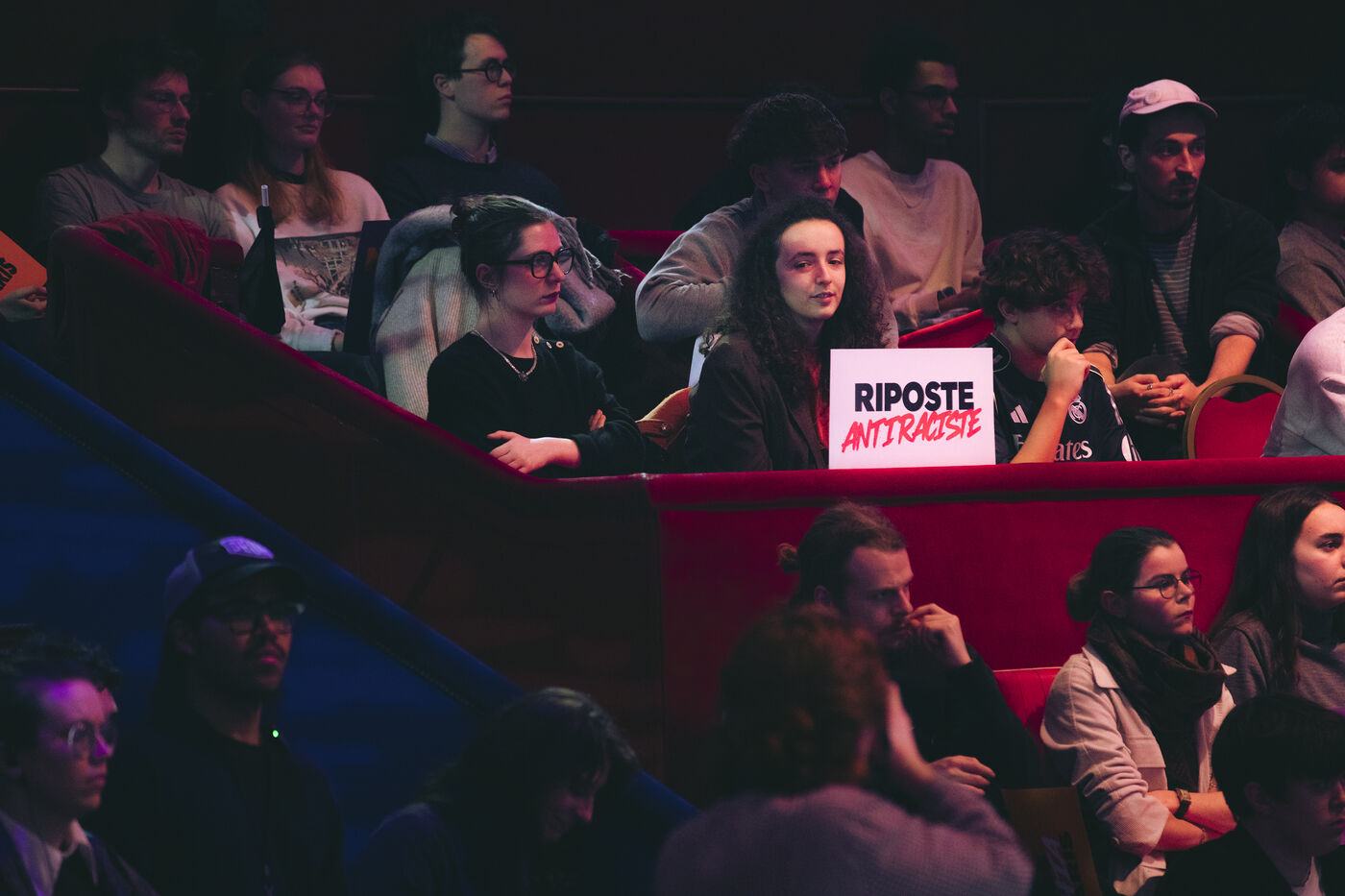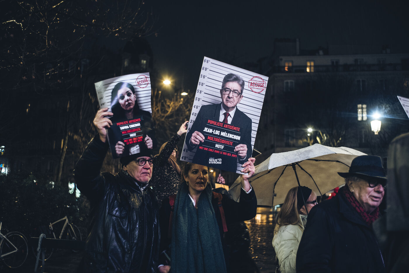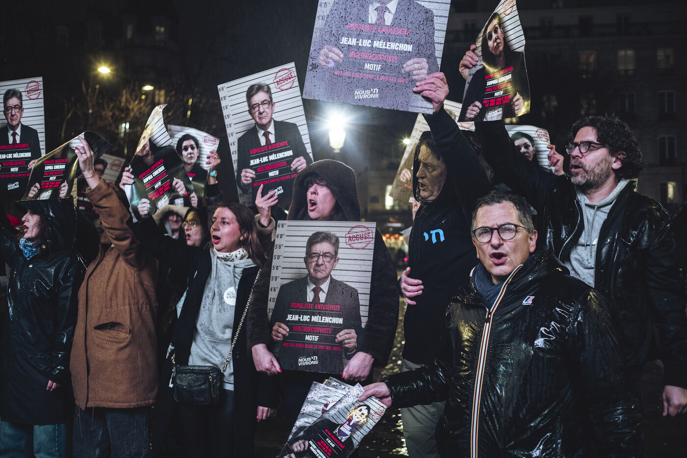 In front of the building's entrance, shortly before the opening, the collective Nous vivrons (We Will Live), which fights against anti-Semitism, shouted, “Chikirou, we see you, your hatred of Jews will not pass.”