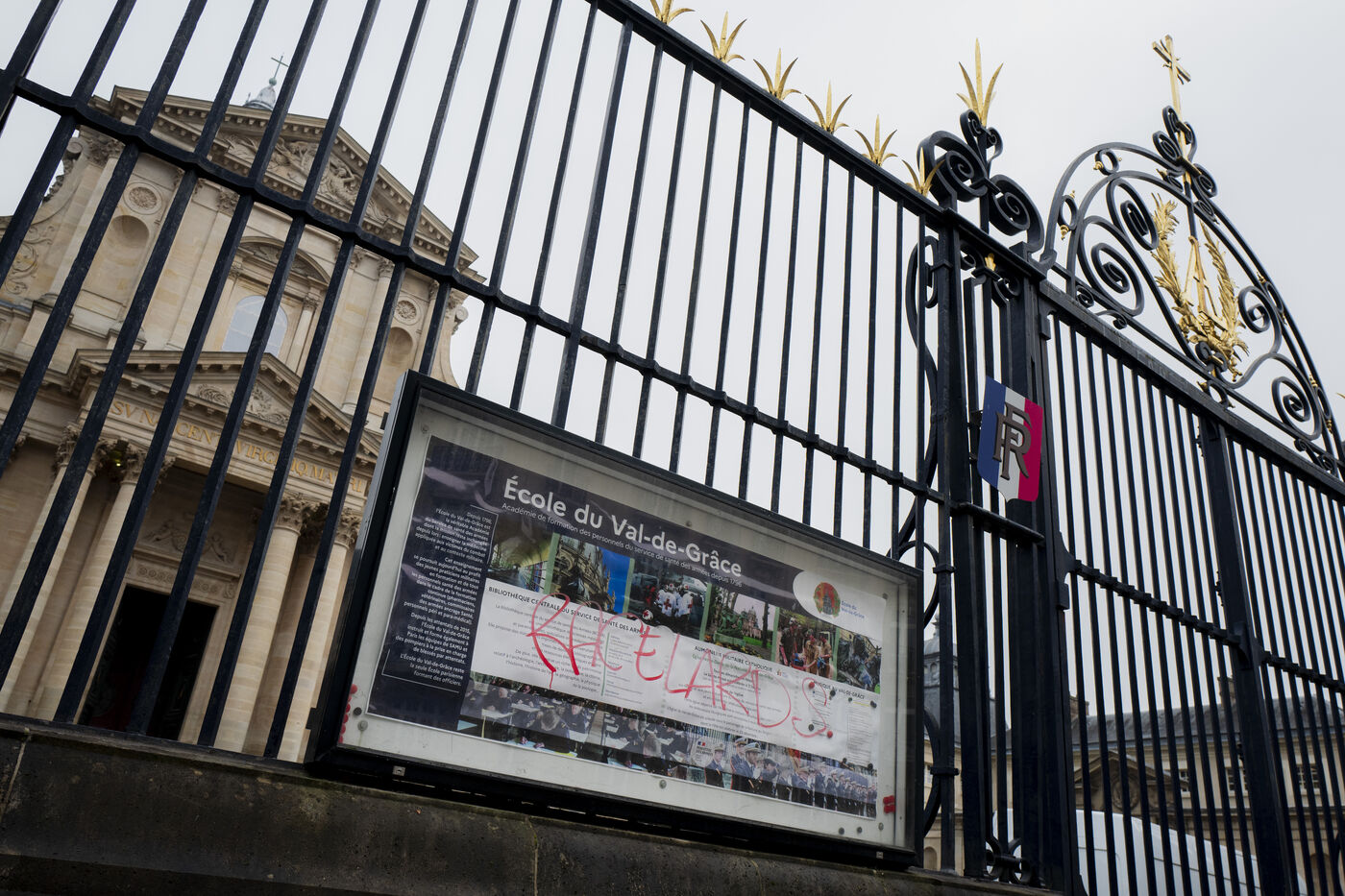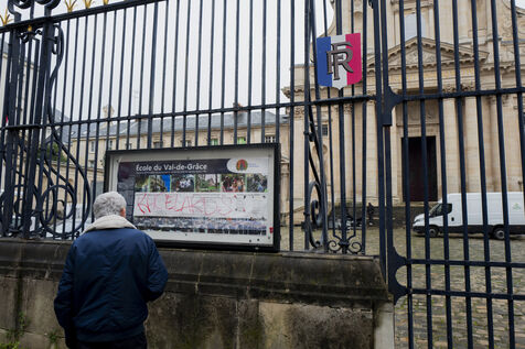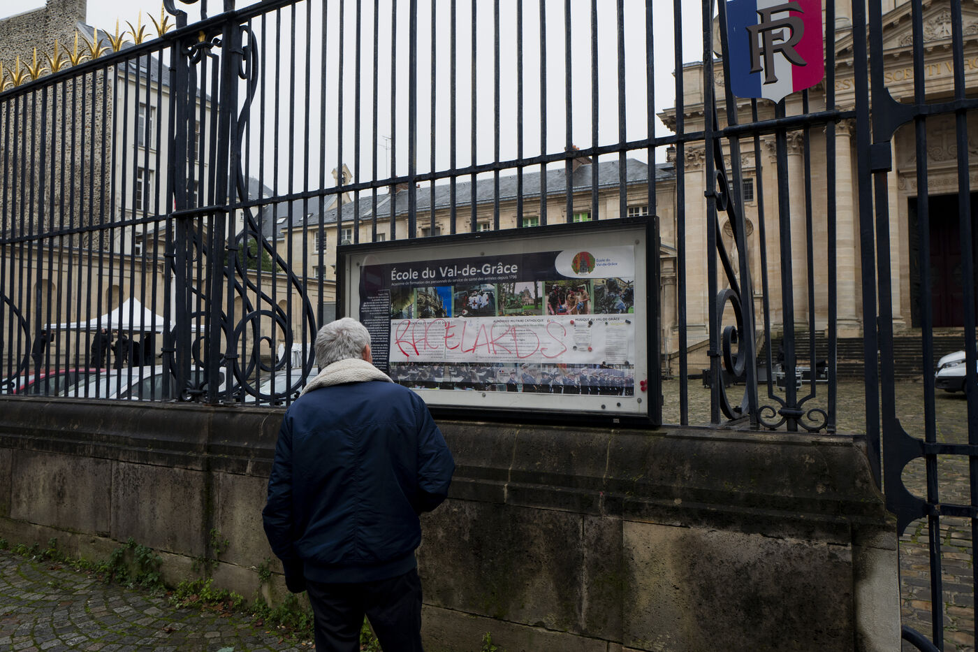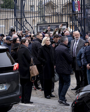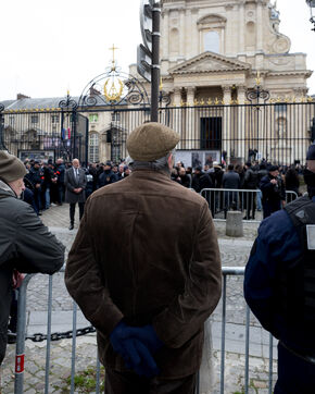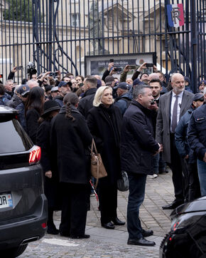 Des sympathisants de Jean Marie Le Pen rendent un hommage à l'homme politique d'extrême droite dans le cadre d'une messe organisée au sein de l'église du Val de Grâce à Paris. De nombreuses personnalités d'extrême droite y sont présentes.