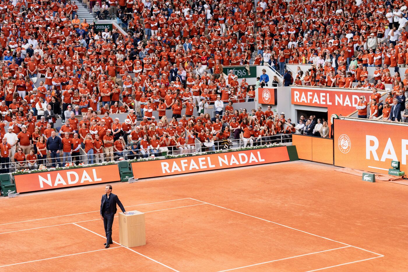 Tribute ceremony for the career of tennis player Rafael Nadal at Roland Garros. Many of the player's friends and famous guests attended.