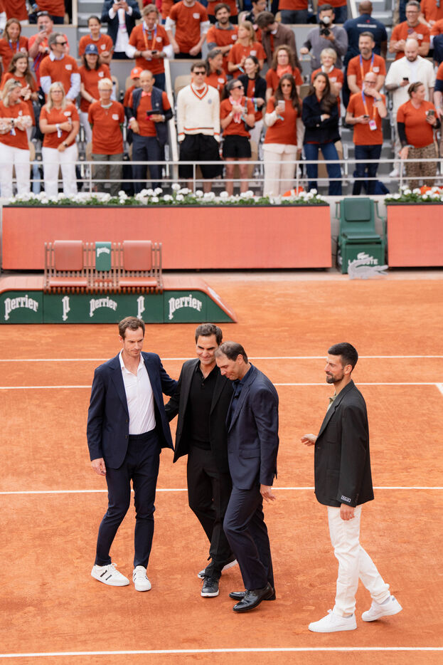 Cérémonie d'hommage pour la carrière du joueur de tennis Rafael Nadal à Roland Garros. De nombreux amis du joueur et invités célèbres sont présents.