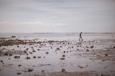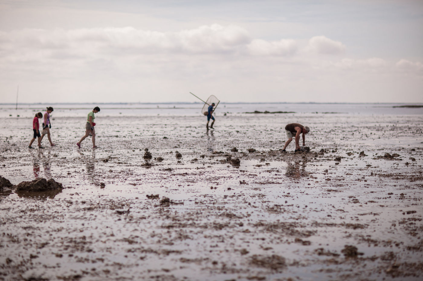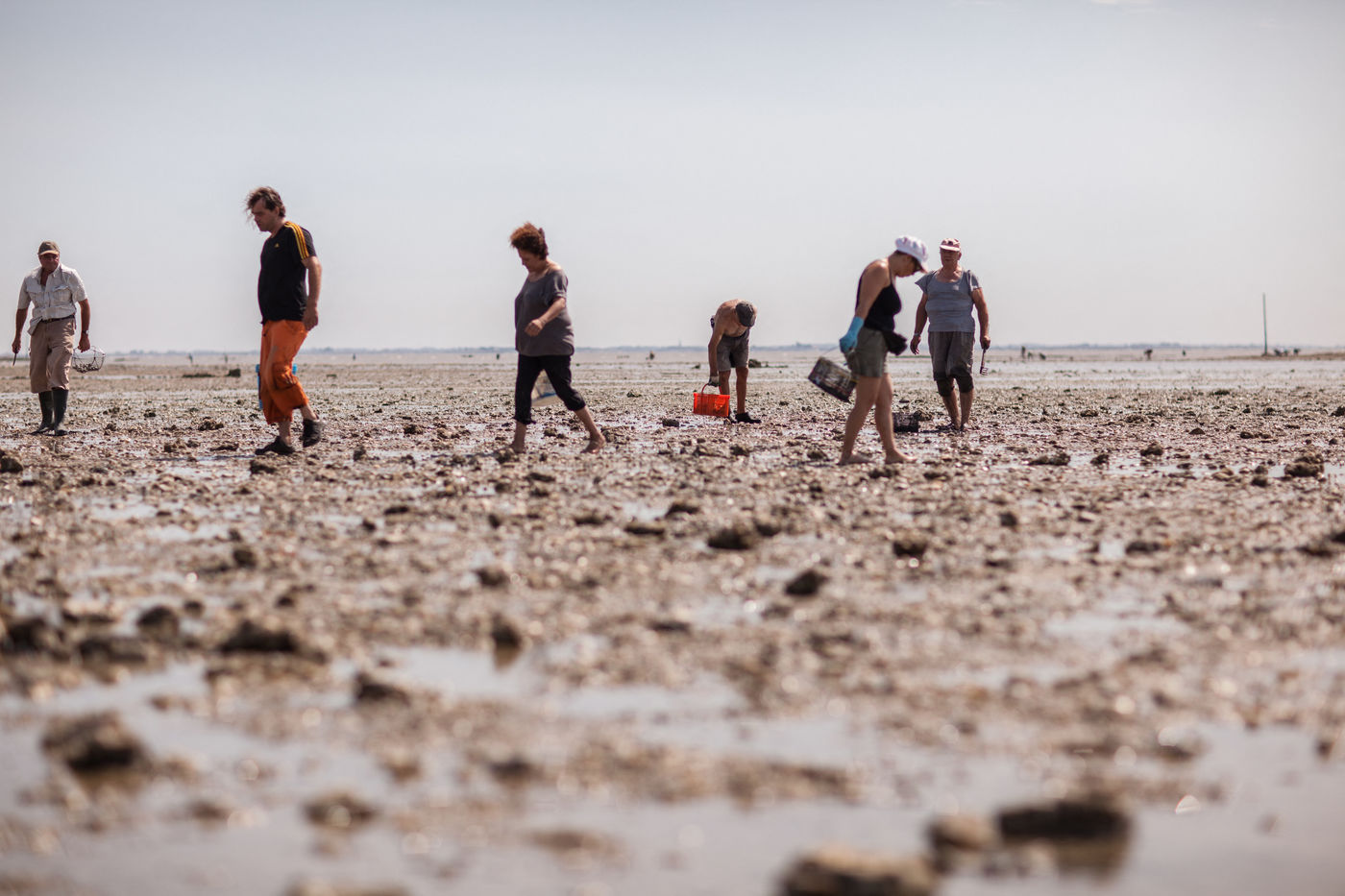 La Bernerie-en Retz (44), le 27 juillet 2011. A l'occasion des grandes marées, les pêcheurs à pied sont des milliers à se presser à marée basse dans la Baie de Bourgneuf pour déterrer les coquillages enfouis dans la vase (palourdes, couteaux).