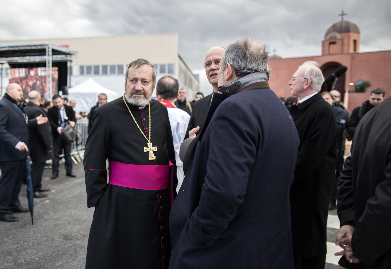 Arnouville (Val d'Oise), le dimanche 6 mars 2016. Bernard Cazeneuve est venue à la Consecration de l'eglise Saint Jean Apotre selon le rite de l'eglise dOrient. Pour l'occasion, le Cardinal de Paris, Mgr André Vingt-Trois et sa Béatitude Mar Louis Raphaël Sako ont consacré cette nouvelle église chaldéenne dans le Val d'Oise.