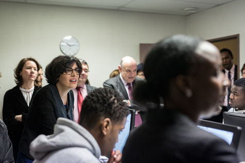 Myriam El Khomri en visite à la mission locale de Paris pour lancer l'extension de la garantie jeune