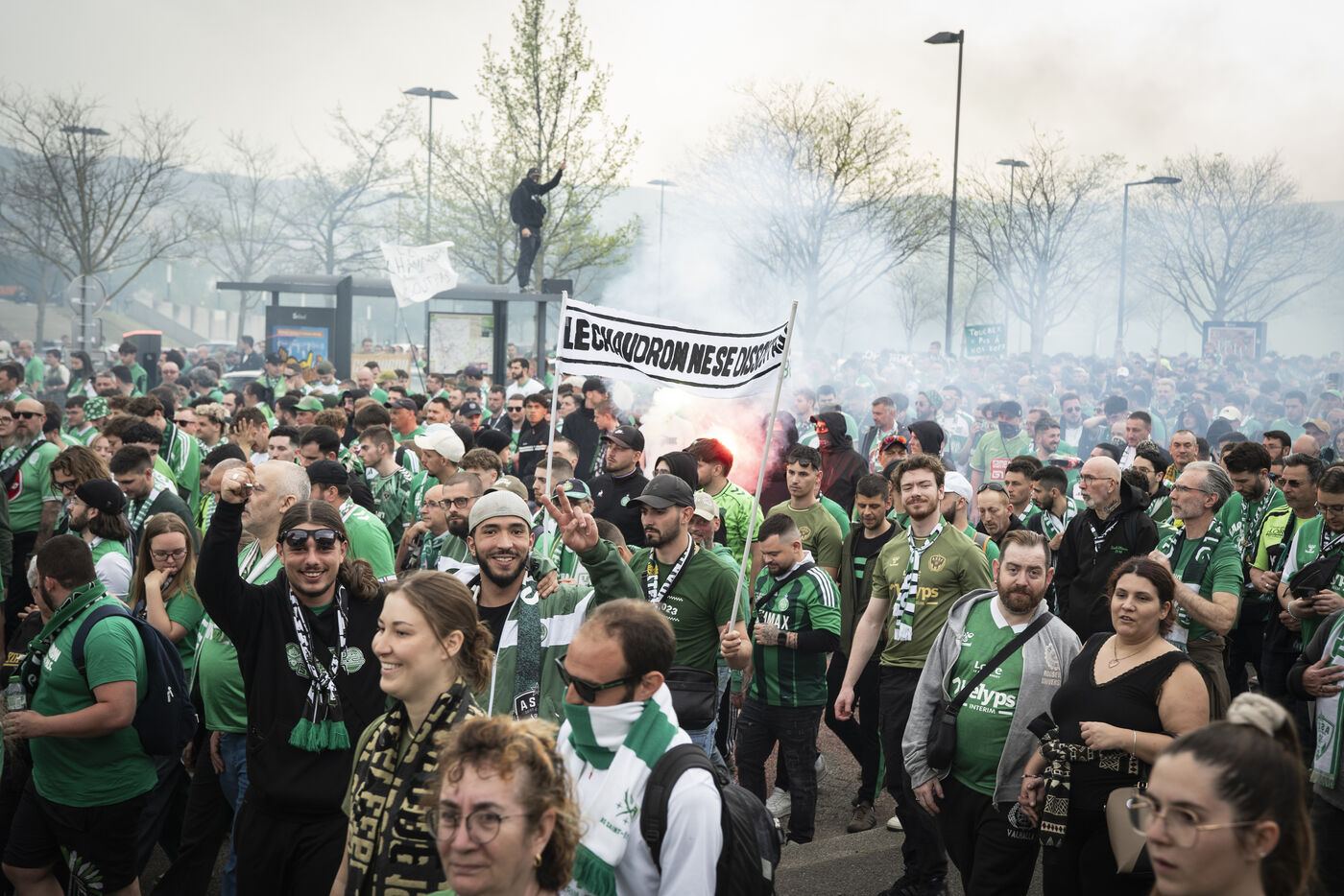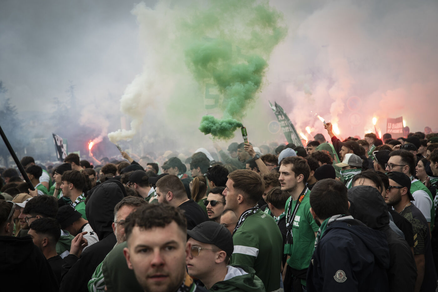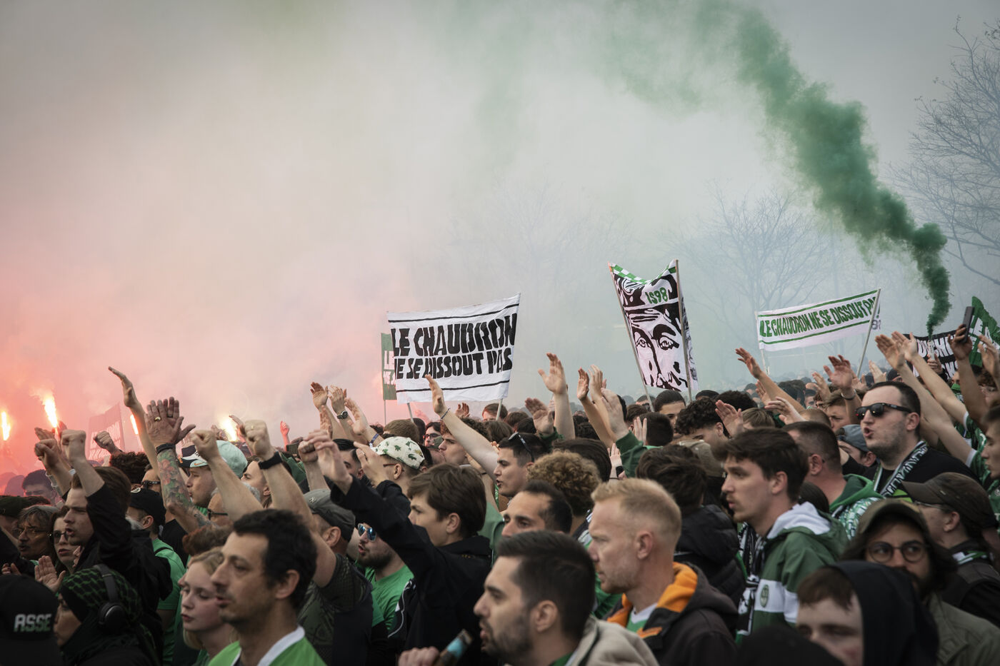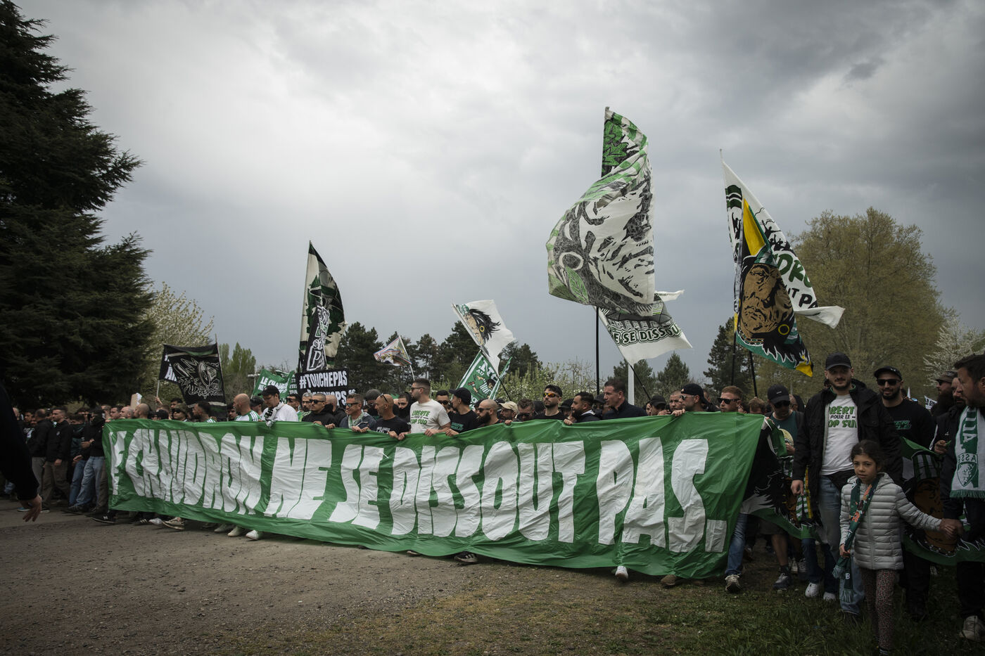 Le samedi 11 avril, de nombreux supporters de l'ASSE se sont réunis dans les rues de Saint-Etienne pour apporter leur soutien aux deux groupes de supporters stéphanois, les Green Angels et les Magic Fans, menacés de dissolution.