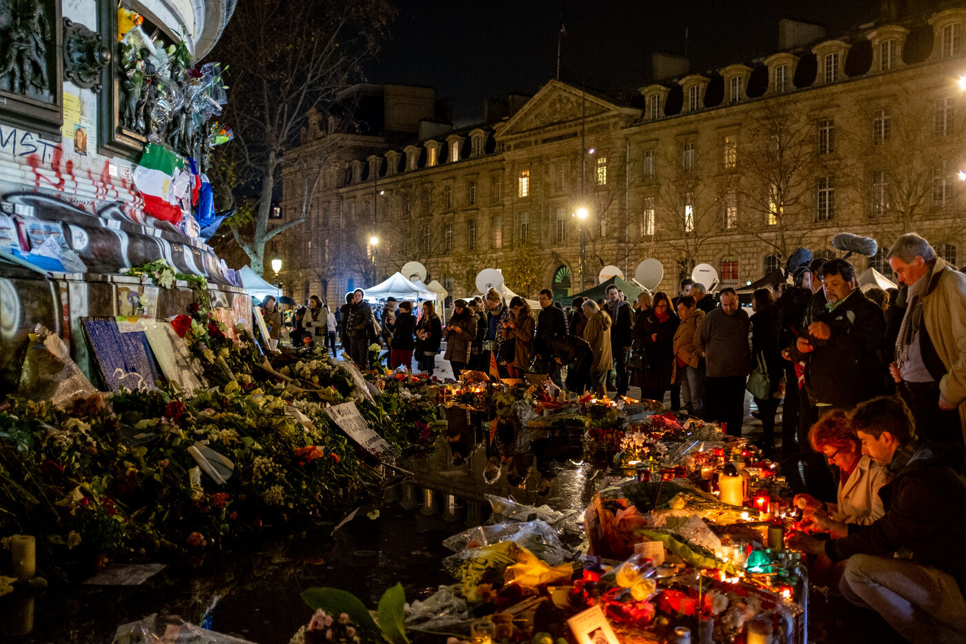 Hommages aux victimes des attentats du 13 Novembre 2015 à Paris.