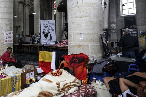 Depuis le 23 Mai, un groupe de sans-papiers est en grève de la faim dans l'église du Béguinage au centre-ville de Bruxelles. Les sans-papiers, qui occupent le Béguinage depuis le mois de Février, demandent au gouvernement de régulariser leur situation. Le 6 Juin une démonstration en soutien aux sans-papiers a eu lieu devant l'église.