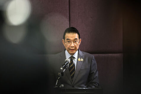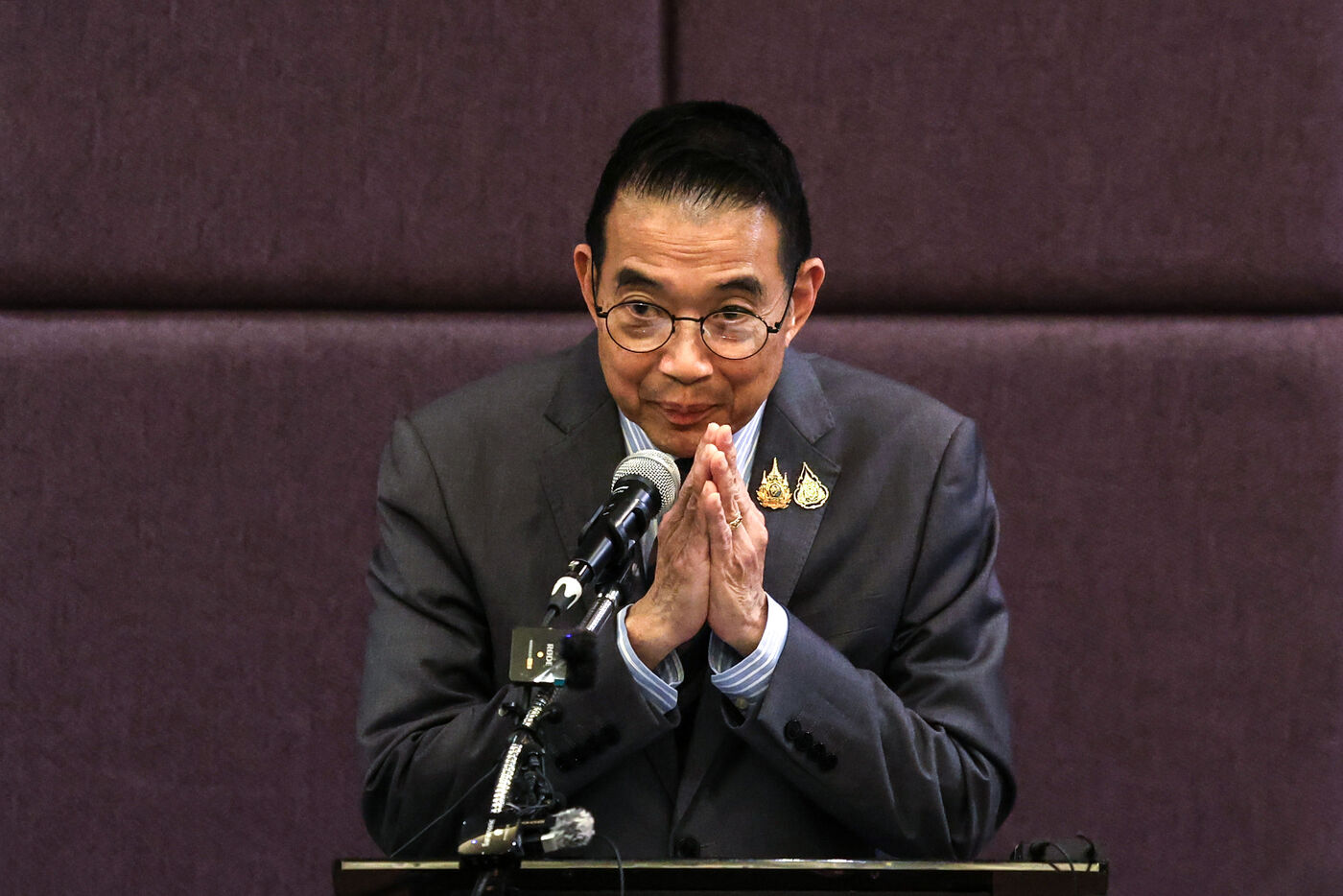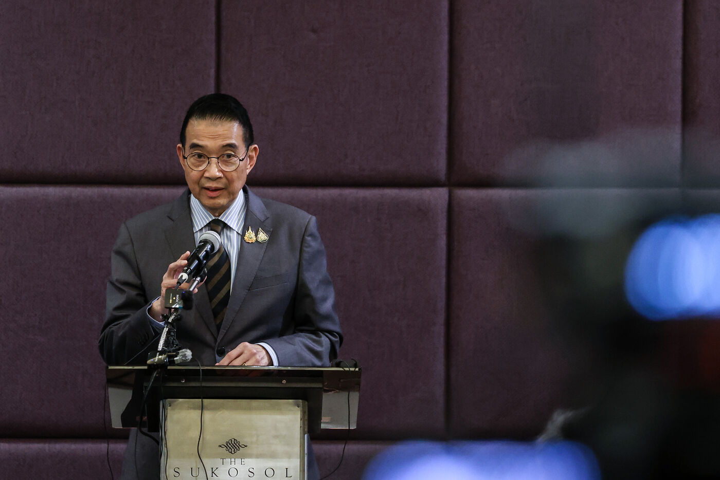 Maris Sangiampongsa, Thailand's Foreign Minister, talks during a press conference following a trilateral meeting with China and Myanmar on combating telecommunications fraud in Bangkok, Thailand on February 28, 2025. In the last few weeks, Thailand has cracked down on Myanmar scam centers operating near the border, with thousands of scam center workers and victims being liberated.