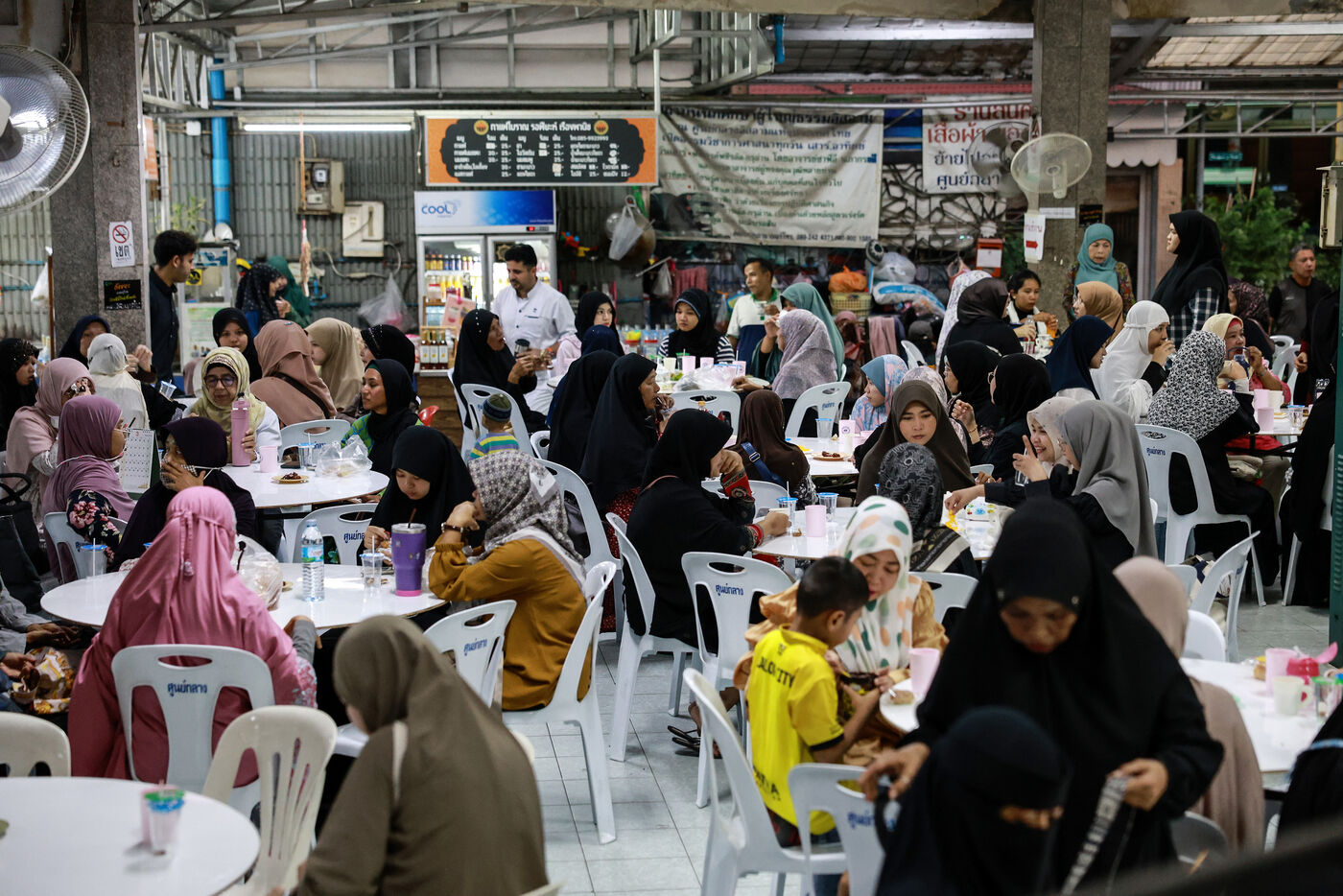 Les fidèles musulmanes prient le premier jour du Ramadan à Bangkok, Thailande le 2 Mars 2025.