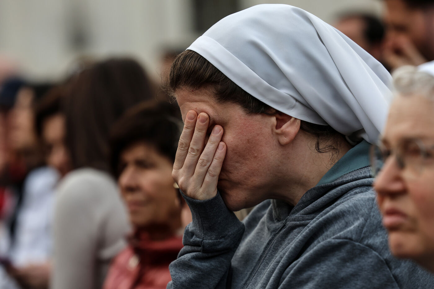 Des fidèles participent à un chapelet en hommage au pape François après son décès sur la place Saint-Pierre, au Vatican, le 21 avril 2025. Le Vatican a annoncé que le pape François, 88 ans, est décédé le 21 avril au matin.