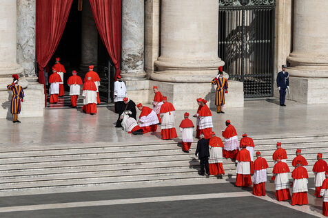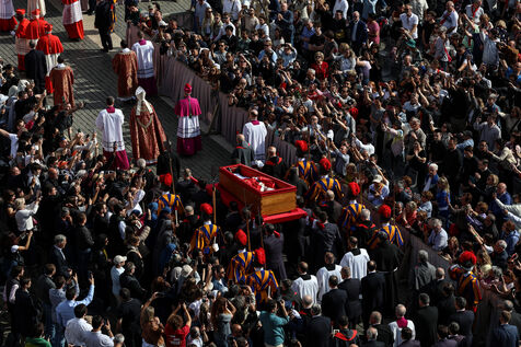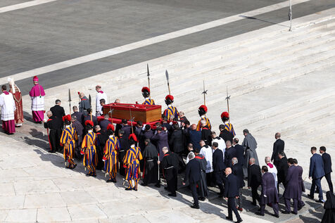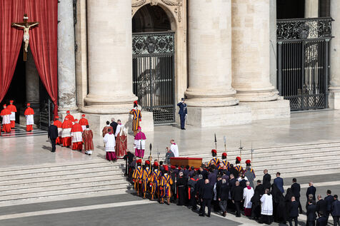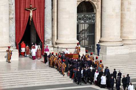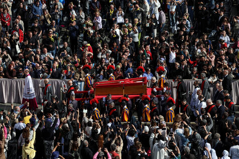 The coffin of the late Pope Francis is transported to St Peter's Basilica following his death, in the Vatican on April 23, 2025. The Vatican announced that Pope Francis, 88, died on April 21st in the morning.