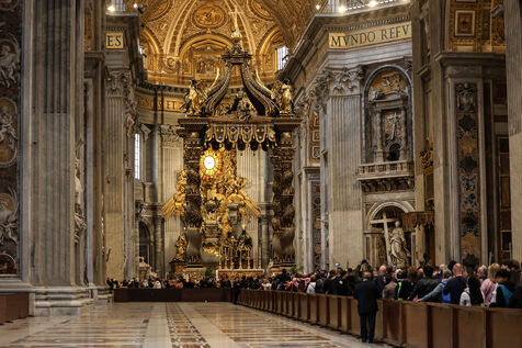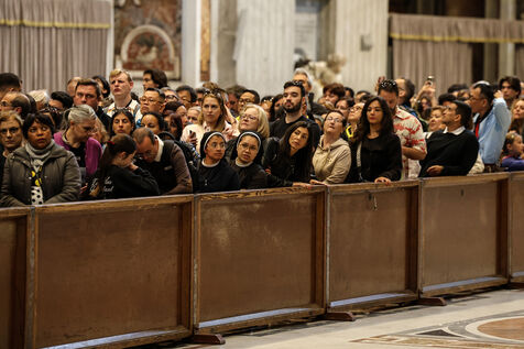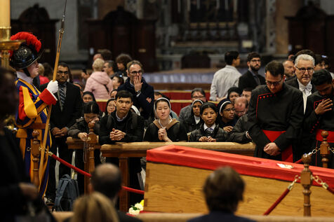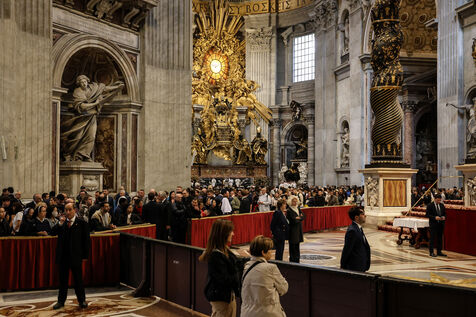 Devotees pay their respects to Pope Francis's body at St Peter's Basilica, following the Pope's death, in the Vatican on April 24, 2025.
