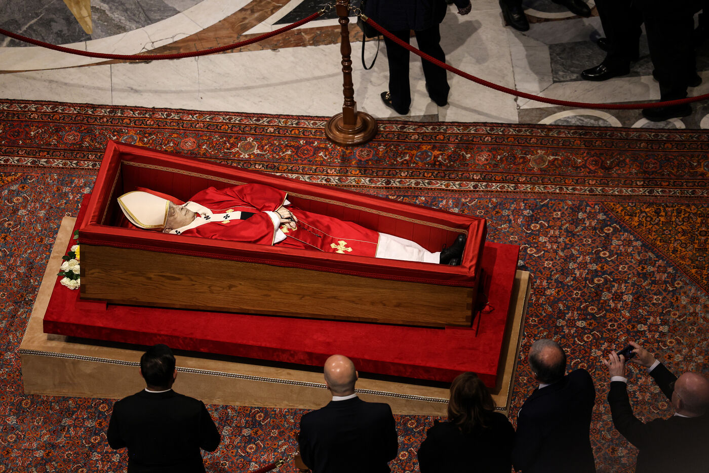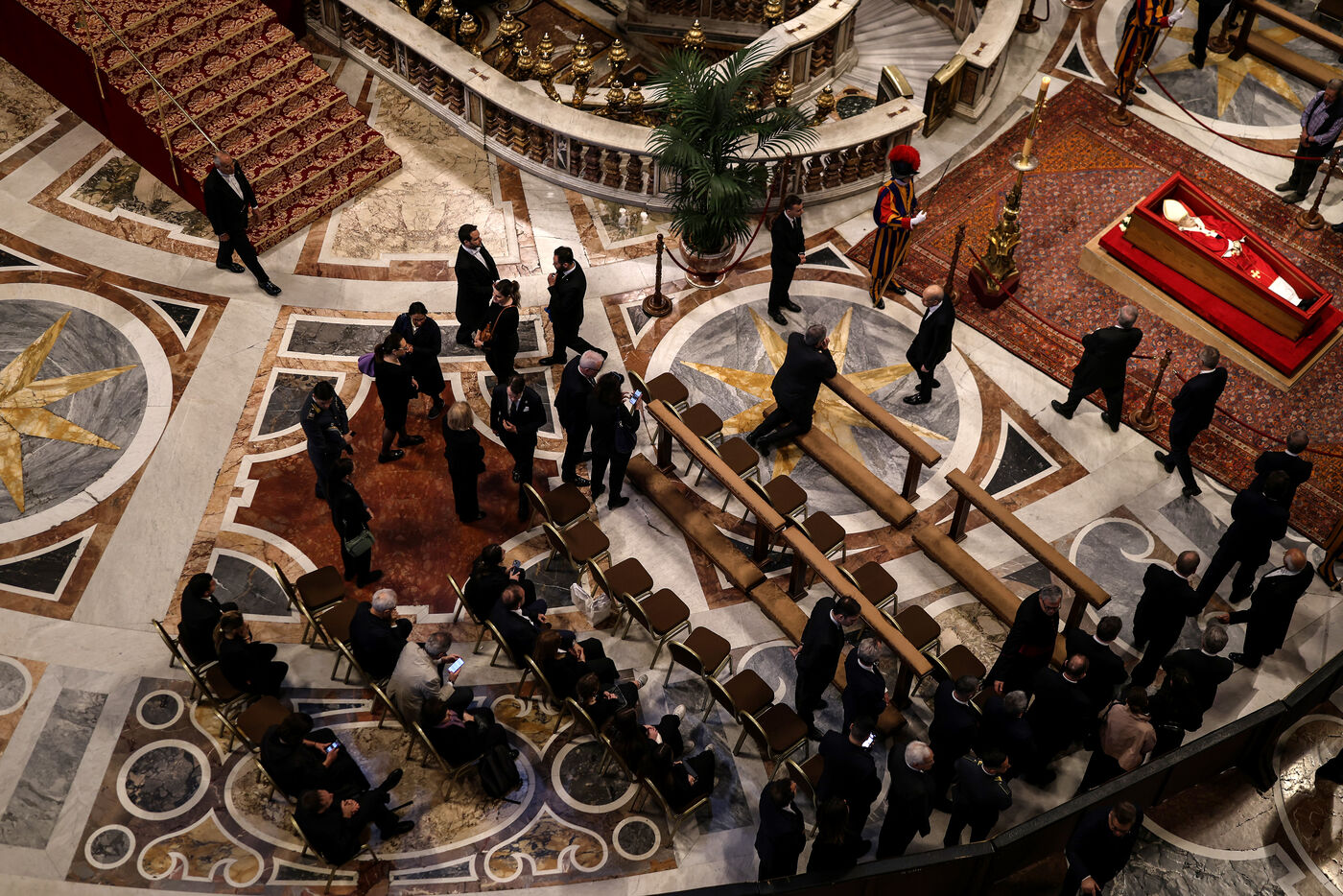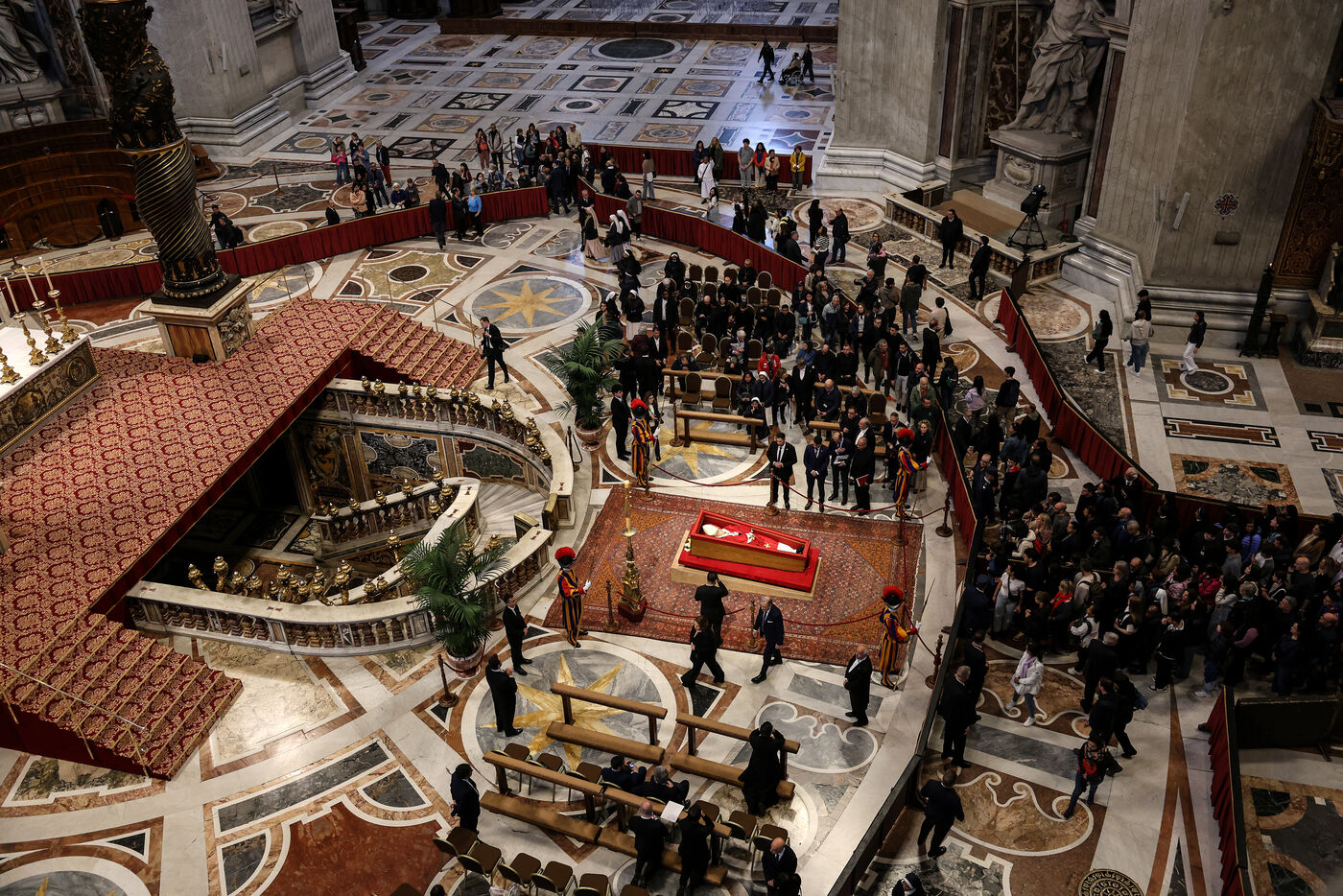 Les fidèles rendent hommage au corps du pape François à la basilique Saint-Pierre, après la mort du pape, au Vatican, le 24 avril 2025.