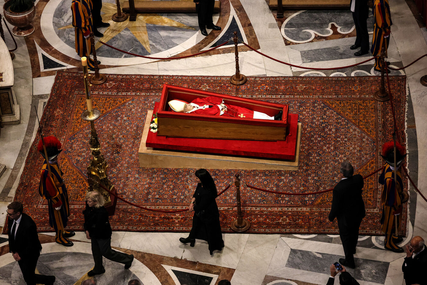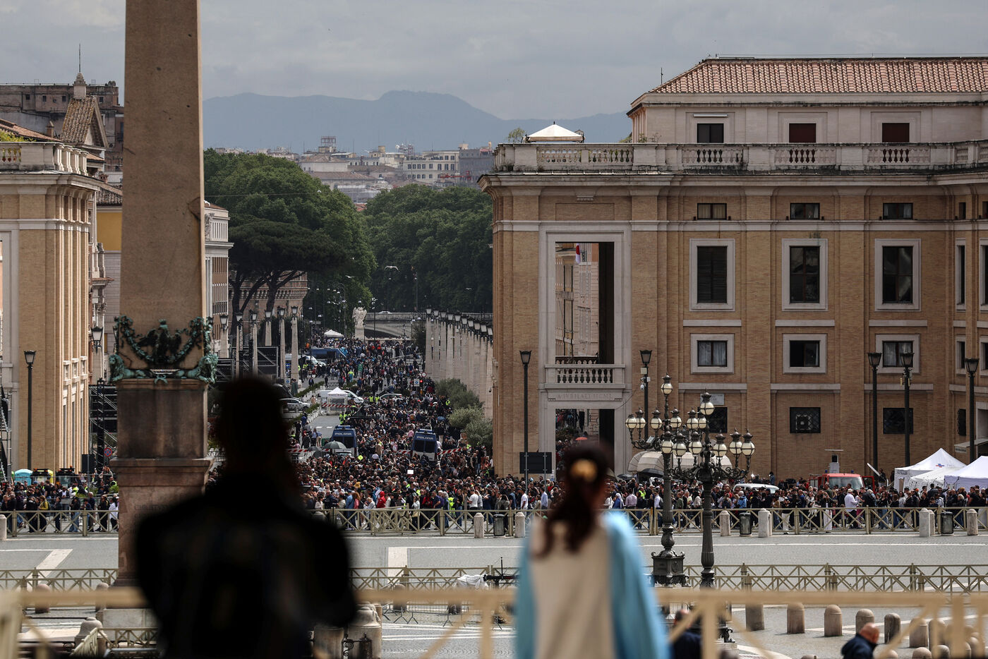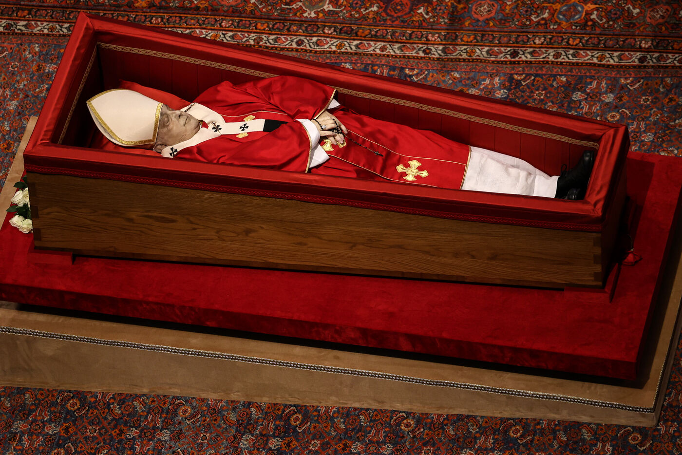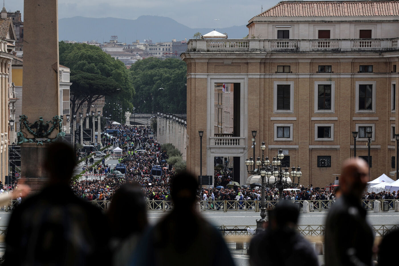 Les fidèles rendent hommage au corps du pape François à la basilique Saint-Pierre, après la mort du pape, au Vatican, le 24 avril 2025.