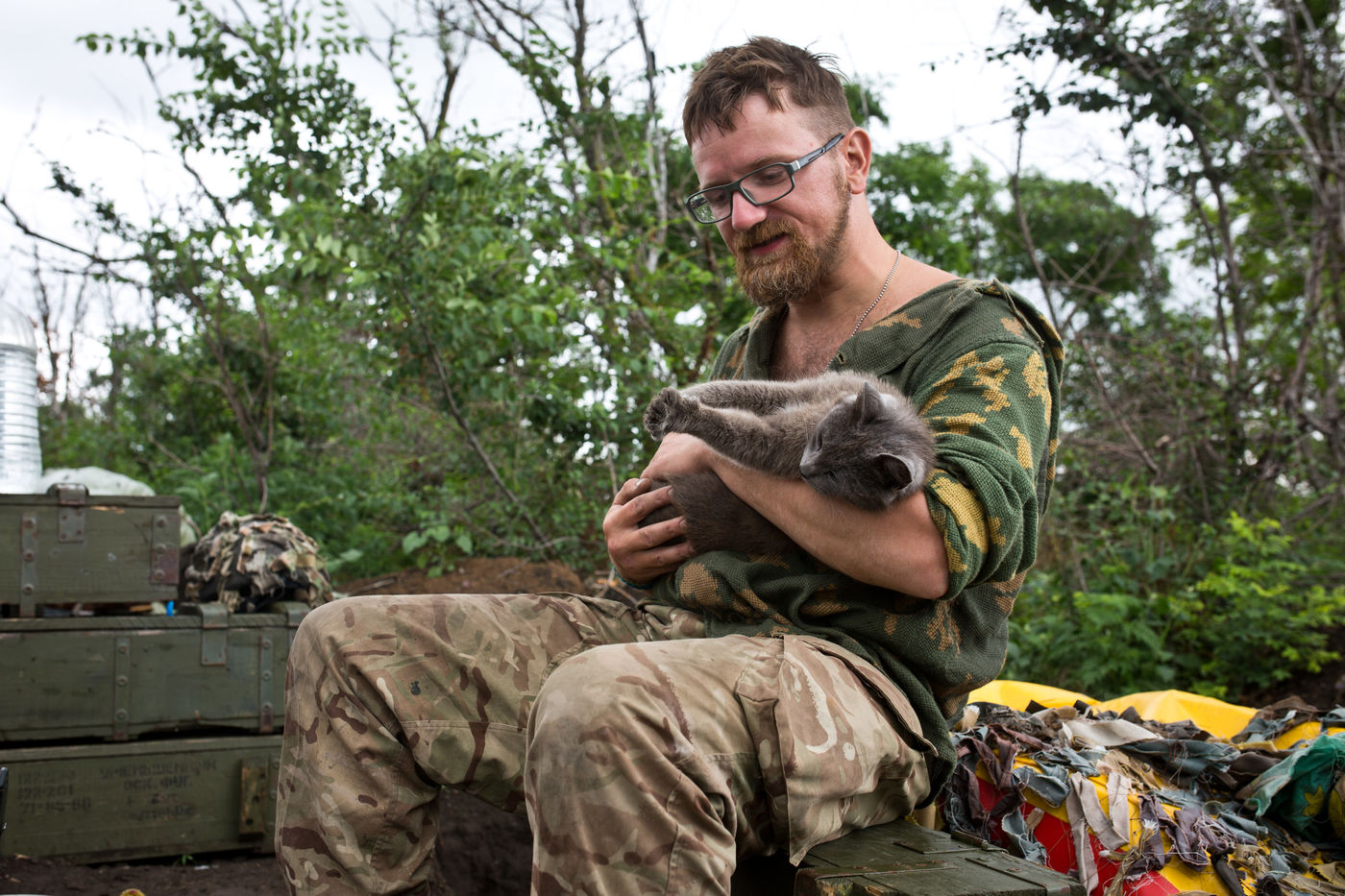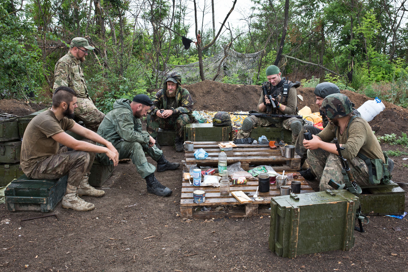 We spent several days (25th of June until 28th of June) on the Shyrokyne frontline, 20 km outside of Mariupol, where volunteers from the Donbass Battalion face separatist forces. We were on the first line of defense for three days, where civilian volunteers (recently included in the National Guard) live and fight in a fashion eerily reminiscent of WWI. Muddy trenches, daily shelling and consistent fear of sniper fire make their daily life a living hell.