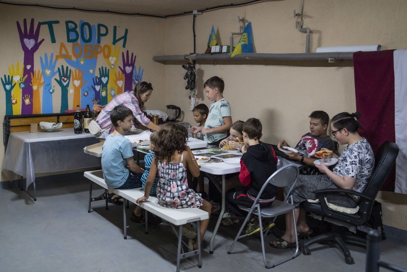 Malgré ces attaques et la ville constamment sous le feu de la guerre, les Khersonien.nes continuent à vivre et survivre et tentent d’y instaurer un semblant de vie normale. De nombreux espaces souterrains ont été restaurés et transformés pour maintenir une vie sociale, culturelle et éducative en sécurité, mais aussi pour y donner la vie.