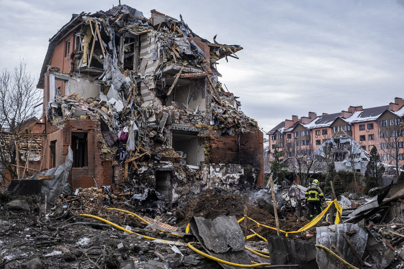 Le 22 février 2026, en Ukraine, des villes et des infrastructures critiques ont été touchées par des missiles et des drones russes. Selon la police régionale, douze personnes ont été blessées dans la région de Kiev, dont un enfant. Dans le district de Fastiv, un homme de 49 ans est décédé des suites de ses blessures.