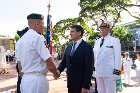Papeete - Manuel Valls lays a wreath at the Papeete War Memorial