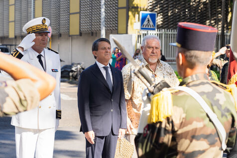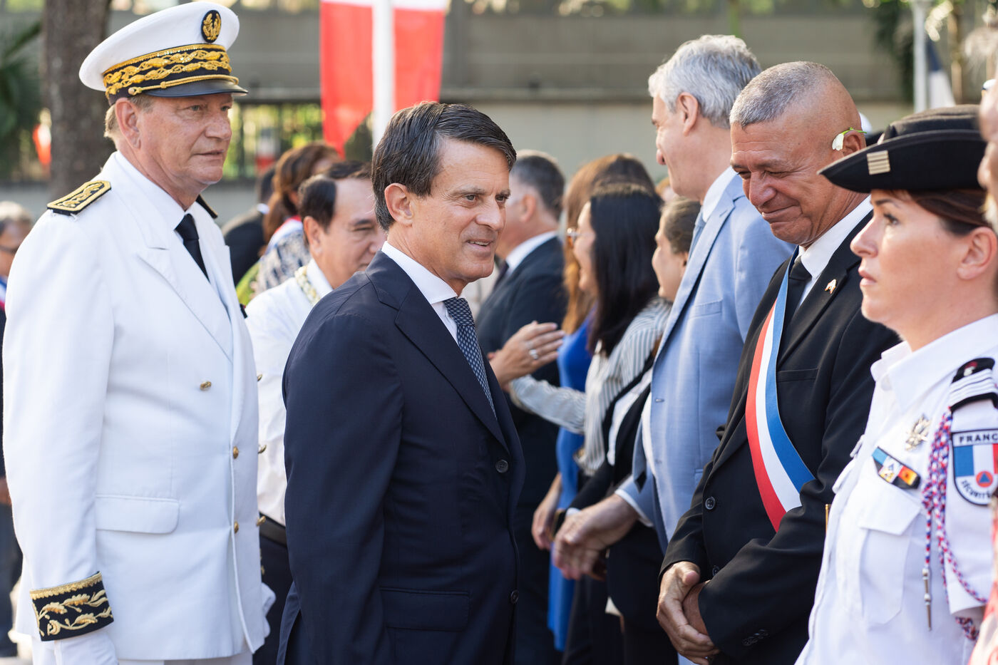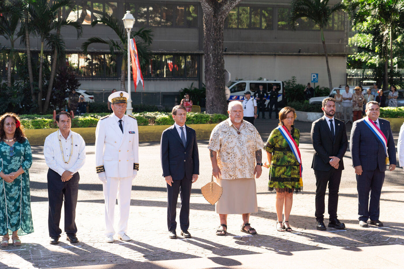 Manuel Valls en visite officielle en Polynésie française pour la première fois depuis sa prise de poste en tant que Ministre des Outre-Mer, dépose une gerbe au Monument aux Morts.
