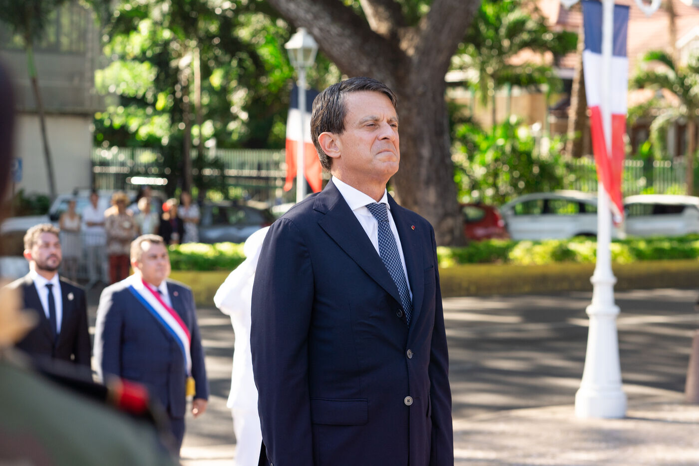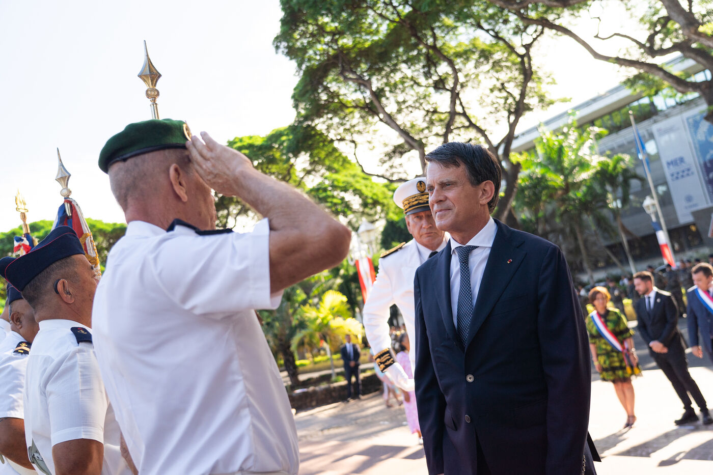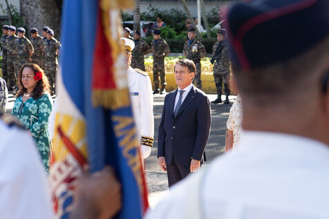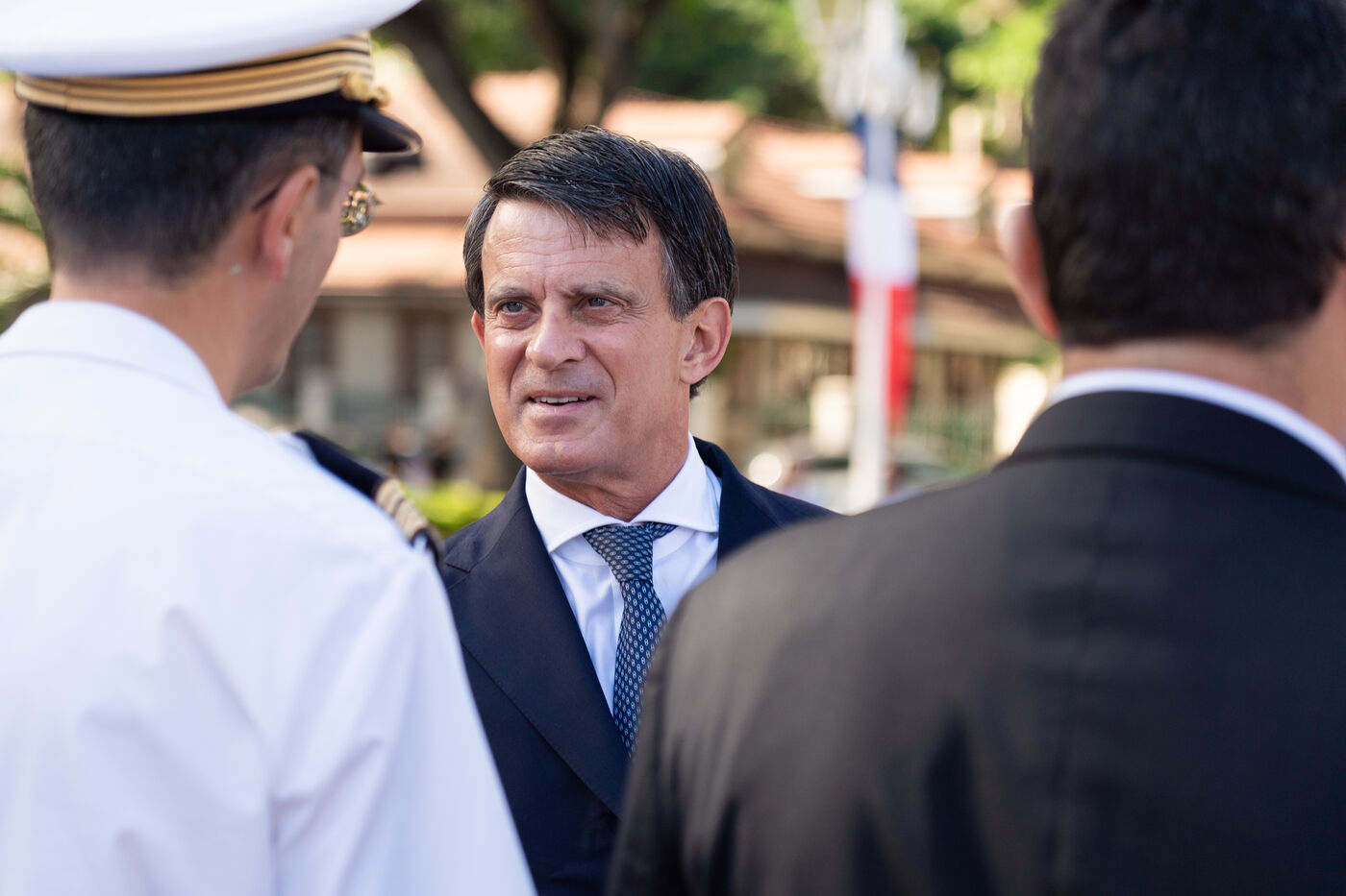 Manuel Valls en visite officielle en Polynésie française pour la première fois depuis sa prise de poste en tant que Ministre des Outre-Mer, dépose une gerbe au Monument aux Morts.