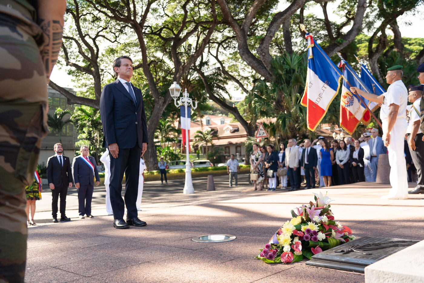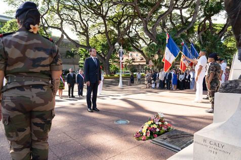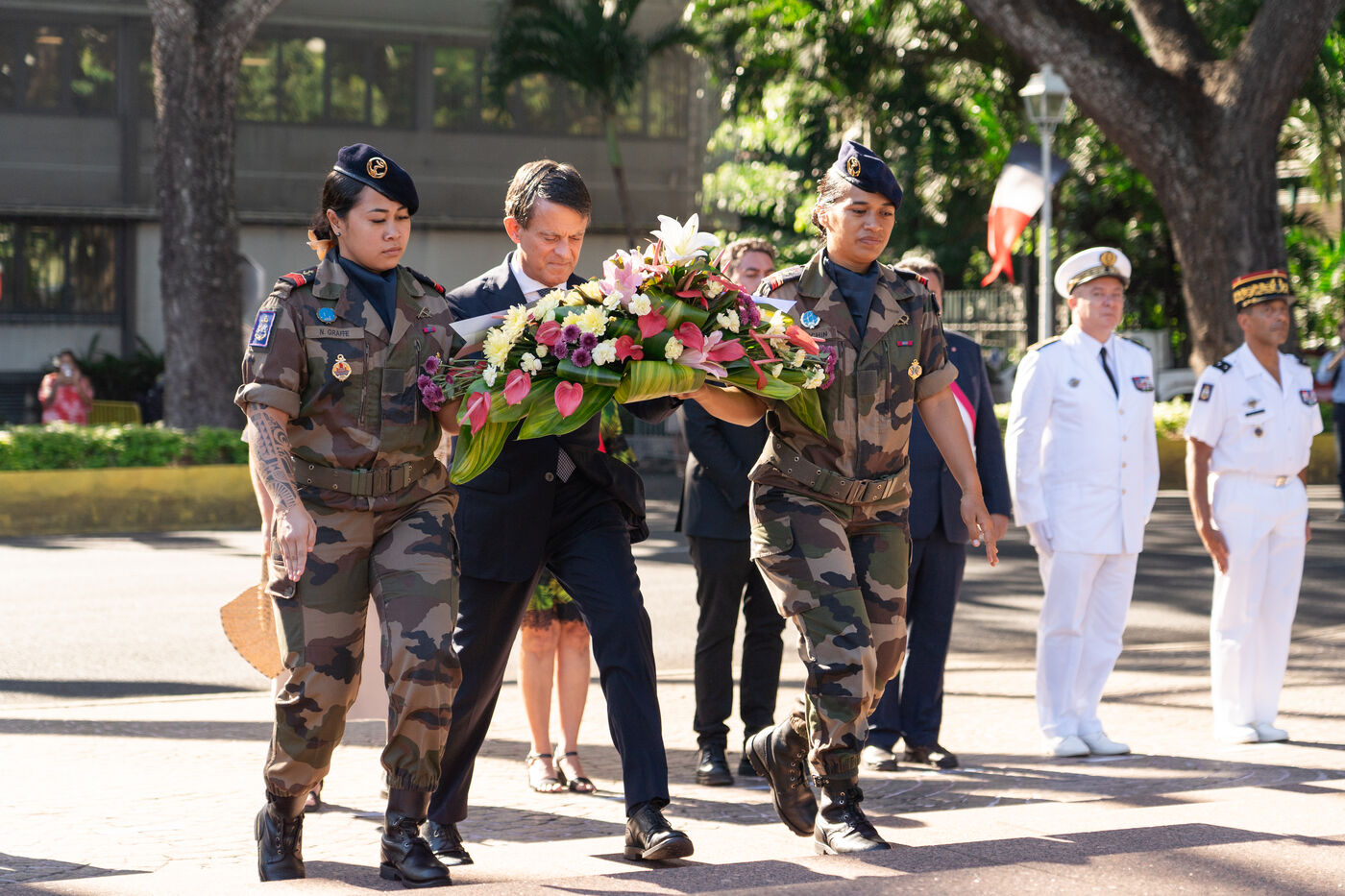 Papeete - Manuel Valls dépose une gerbe au Monument aux Morts