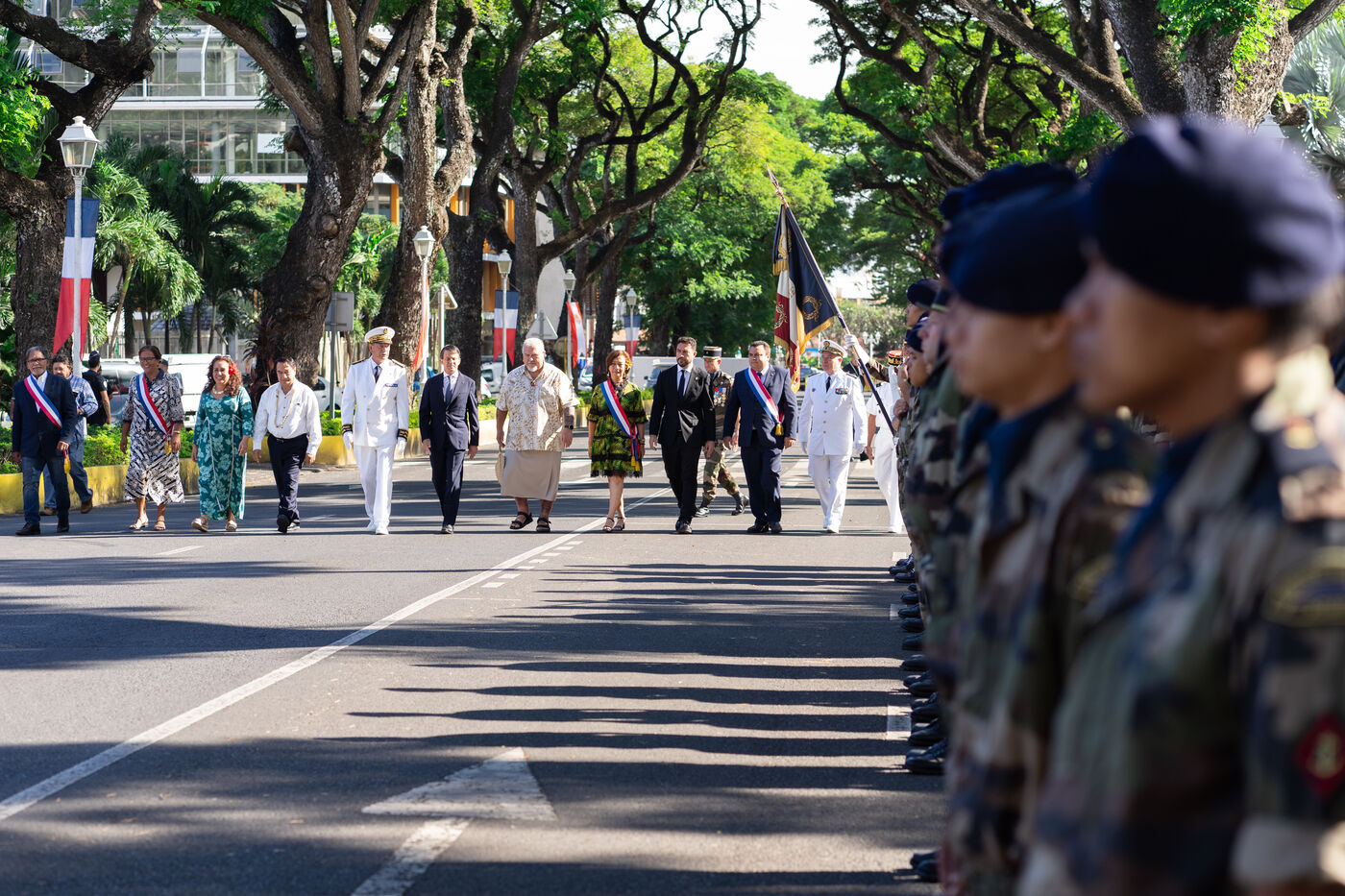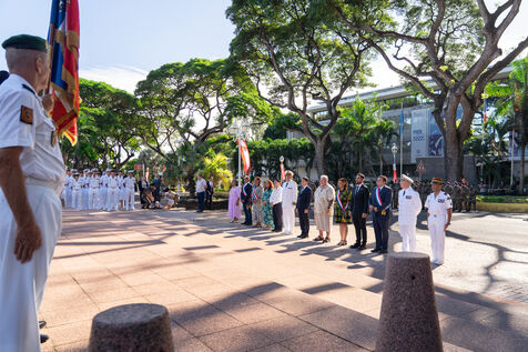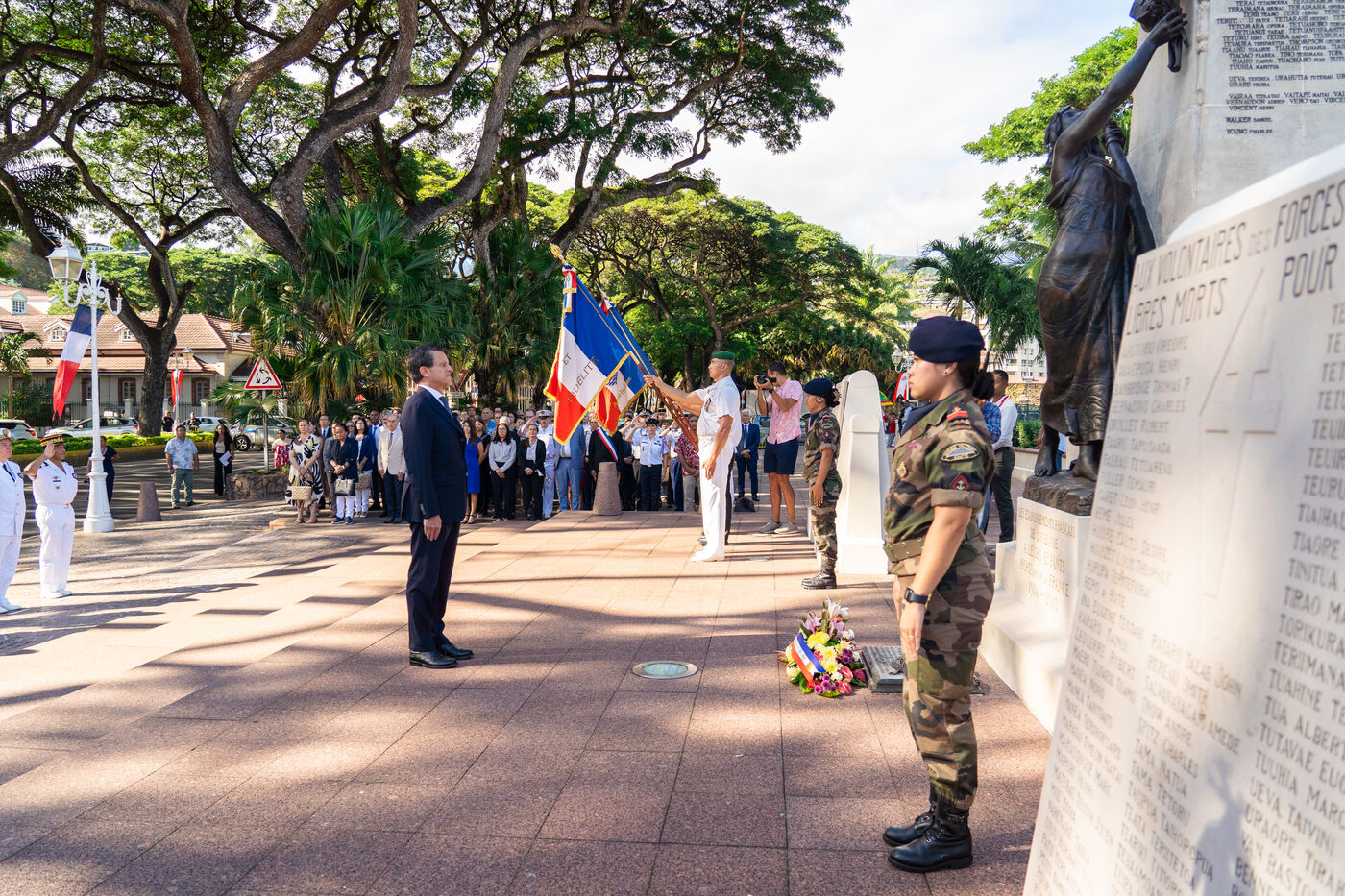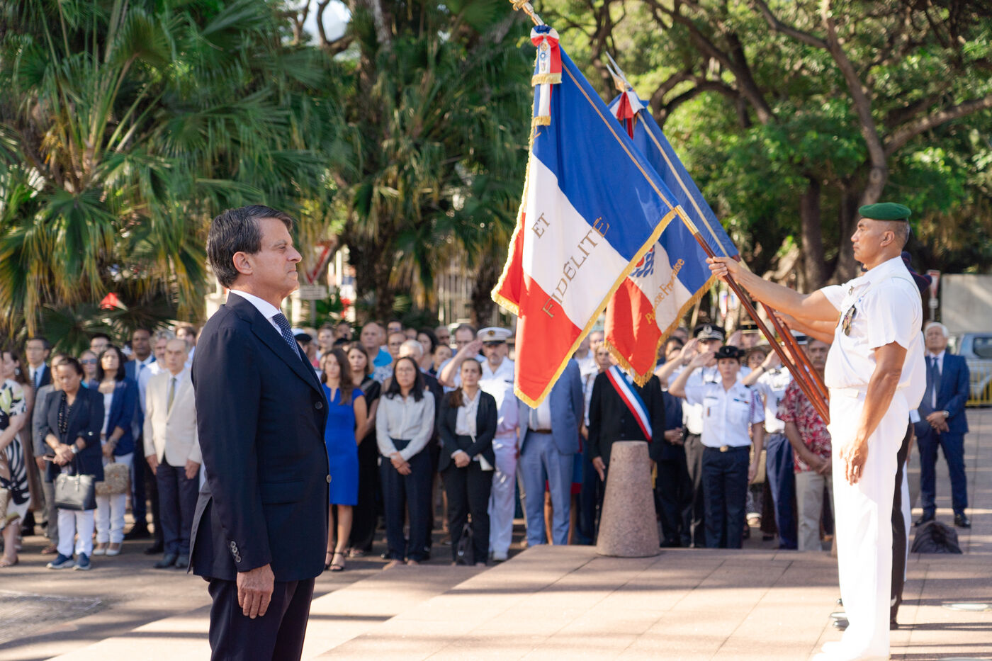 Papeete - Manuel Valls dépose une gerbe au Monument aux Morts