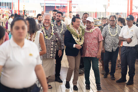 Le Ministre des Outre-Mer Manuel Valls visite le marché de Papeete un dimanche matin, et ses exposants de fruits, légumes, poissons, d'artisanat.