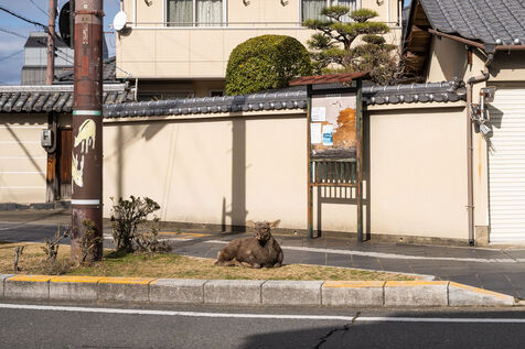 In Nara, wild deer do not only live in the park, they have also become part of the city’s everyday landscape and tourist image. The coexistence of around 1,300 deer with nearly 13 million visitors each year also brings agricultural damage, tensions with local residents, pressure on their habitat, and growing management challenges. In recent years, accidents involving deer have increased again, linked to excessive contact, inappropriate feeding, and the animals’ presence along roads. This series primarily offers a partial glimpse of the deer’s daily presence within the urban landscape.