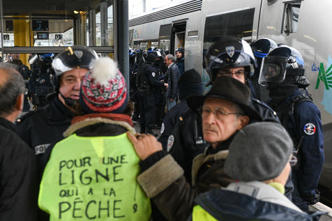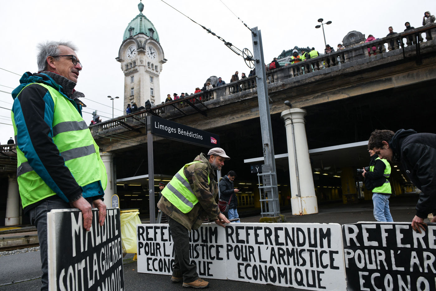 On December 8, the third climate march took place in Limoges, with an increasing number of participants. This time the atmosphere was more electric in Limoges due to the national movement of yellow vests. The collective of the Limoges-Ussel line arrived at the station to join the march. They were received by police officers from the intervention section: searches and five handcuffed activists. These militants came to demonstrate, joined by the "insubmissives of the plateau", to denounce the suppression of so-called rural lines, notably the Limoges-Ussel line which serves the territory of Millevaches. They then occupied the tracks.