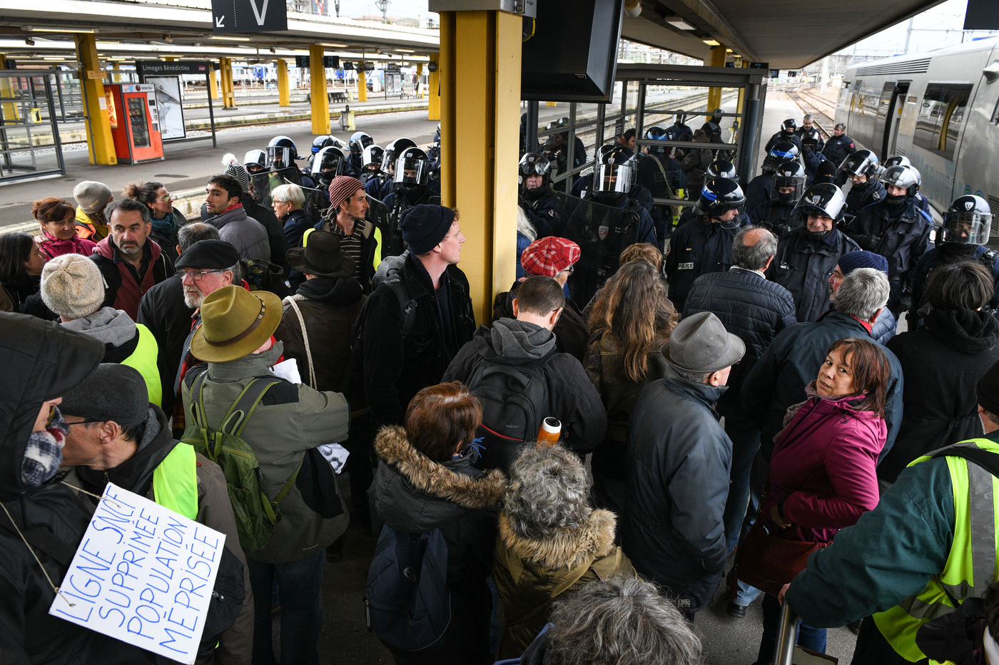 Le 8 décembre avait lieu la troisième marche pour le climat à Limoges, avec des participants de plus en plus nombreux. Cette fois l'ambiance était plus électrique à Limoges en raison du mouvement national des gilets jaunes. le collectif de la ligne Limoges-Ussel sont arrivés à la gare pour rejoindre la marche. Ils ont été accueillis par des policiers de la section d'intervention : fouilles et cinq militants menotés. Ces militants venaient manifester, rejoints par les "insoumis du plateau", pour dénoncer la suppression de lignes dites rurales, notamment la ligne Limoges-Ussel qui dessert le territoire de Millevaches. Ils ont ensuite occupé les voies.