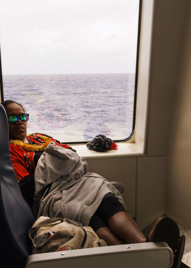Si des vols réguliers relient Nouméa à l’île des Pins et les trois îles Loyauté (Maré, Lifou et Ouvéa), un autre moyen de transport, privilégié par la population locale car plus abordable que l’avion : le Betico 2. La navette maritime assure depuis plus de quinze années ces liaisons et des traversées inter-îles entre Lifou et Maré. Le Navire accueille jusqu’à 355 voyageurs à bord, du fret et des véhicules. Quelques chiffres en 2023 : 91136 passagers, 200 voyages effectués, 57 employés, 408 voitures et 1545 vélos transportés. Bienvenue à bord du Betico 2 entre Maré et Nouméa pour 4 heures de voyage le 12 novembre 2024.