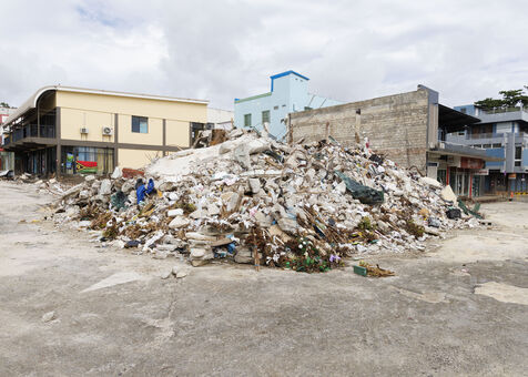 At the end of January, six weeks after the earthquake, the risk of collapse was still such that the business district of Port Vila remained sealed off. It is forbidden to travel inside the ‘red zone’, either on foot or in a vehicle, without a pass issued by the authorities. Weakened buildings are still in danger of collapsing. Around a hundred have been declared safe, but some will have to be demolished, such as the Lolam building, Chantilly's hotel on the seafront and the French, American and New Zealand embassies, whose famous La Casa D'Andrea e Luciano building is nothing but a pile of concrete.