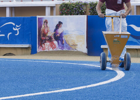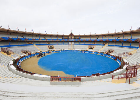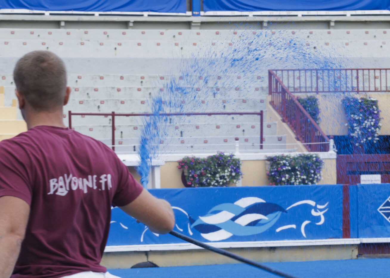 In August 2024, the Bayonne bullring will be transformed to host the corrida goyesque of the year. Four photographic series are on show. The first focuses on the preparations for the bullring. The decor is set: usually in red, the ruedo (the arena) turns blue under the brush of painter Miguel Etxeberria. The artist Pierre Saüt is in charge of the 120 metres of canvas to be painted to cover all the talanquères (fences) of the bullring. A second series shows the backstage areas (stables, chapel, paseo, etc.).