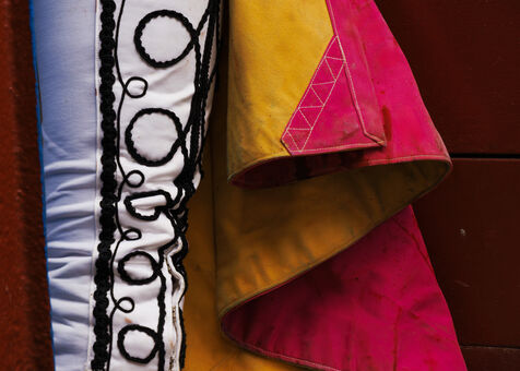 In August 2024, the Bayonne bullring will be transformed to host the corrida goyesque of the year. Four photographic series are on show. The first focuses on the preparations for the bullring. The decor is set: usually in red, the ruedo (the arena) turns blue under the brush of painter Miguel Etxeberria. The artist Pierre Saüt is in charge of the 120 metres of canvas to be painted to cover all the talanquères (fences) of the bullring. A second series shows the backstage areas (stables, chapel, paseo, etc.).
