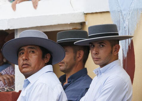 In the third and fourth series, the goyesque staging is repeated in the ring: each matador is dressed in clothes similar to those of Goya's time (1746-1828). The three matadors present - Daniel Luque, Alejandro Talavante and Alejandro Mora - leave behind their traditional skimpy outfits and don a fuller, richly embroidered chaquetilla (waistcoat), but no sequins or bright colours. The fabric is silk or velvet. The traditional montera (toque) is replaced by a unicorn. The members of the caudrilla, the peones, the picadors, the mozo de espadas (swordsman), the mulilleros... also wear costumes from Goya's time.