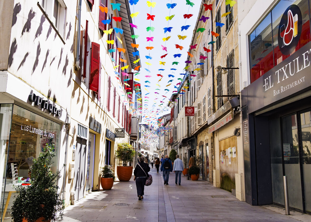À défaut de pouvoir planter des arbres dans certaines rues de leur hypercentre, de nombreuses villes mettent en place des ombrières éphémères pour l’été. Tel est le cas de la ville de Dax qui depuis plusieurs années installe des ciels de rue dont le but est simple : faire de l’ombre aux passants mais aussi apporter une touche de décoration colorée.