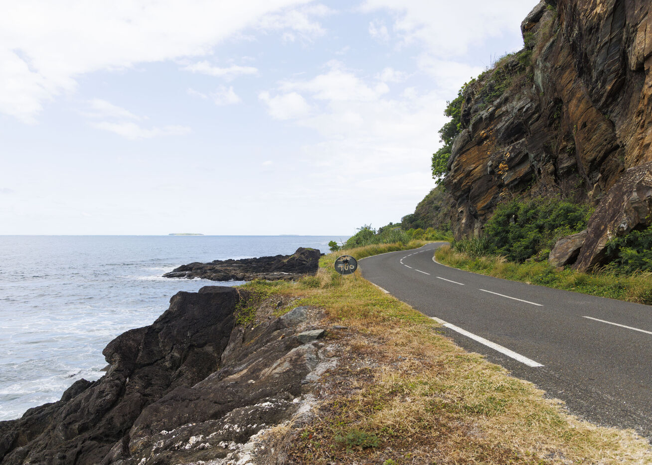 Dans l’Est de la Grande Terre, l’île principale de la Nouvelle-Calédonie, la route de la Corniche relie les villes de Pouébo à Hienghene. Entre océan Pacifique et montagnes, entre les plages de galet gris et les falaises tombantes à la végétation luxuriante, cette route étroite et sinueuse au bord de mer offre des points de vues époustouflants sur l’horizon. De ces montagnes majestueuses qui tombent dans le Pacifique, la Nouvelle-Calédonie prend des airs d’Ecosse.