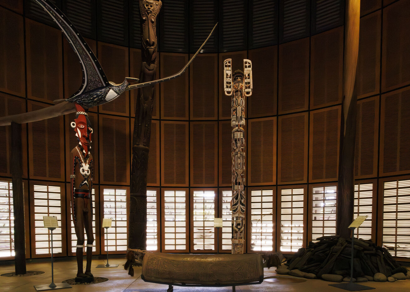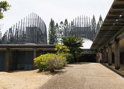 Spread over 8 hectares, the site consists of ten large huts lined up among huge columnar pines. The building, designed by Renzo Piano (the architect of the Centre Georges-Pompidou in Paris) in collaboration with the Kanak Culture Development Agency (ADCK), brings together in one place a contemporary art centre, exhibition halls, various performance spaces including a theatre, a specialised media library and reception areas for school groups in residence.