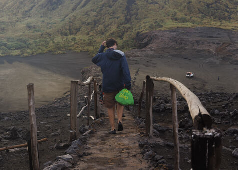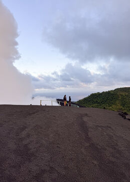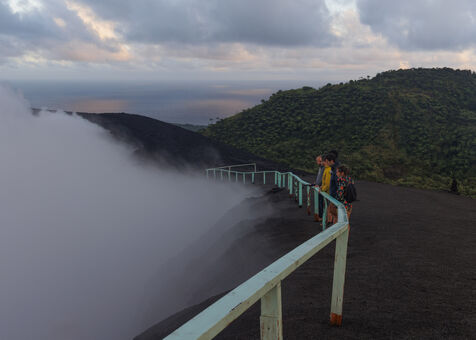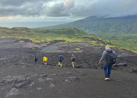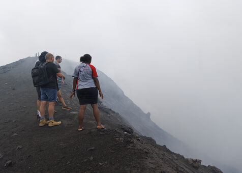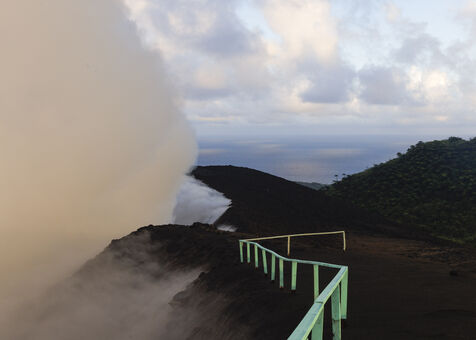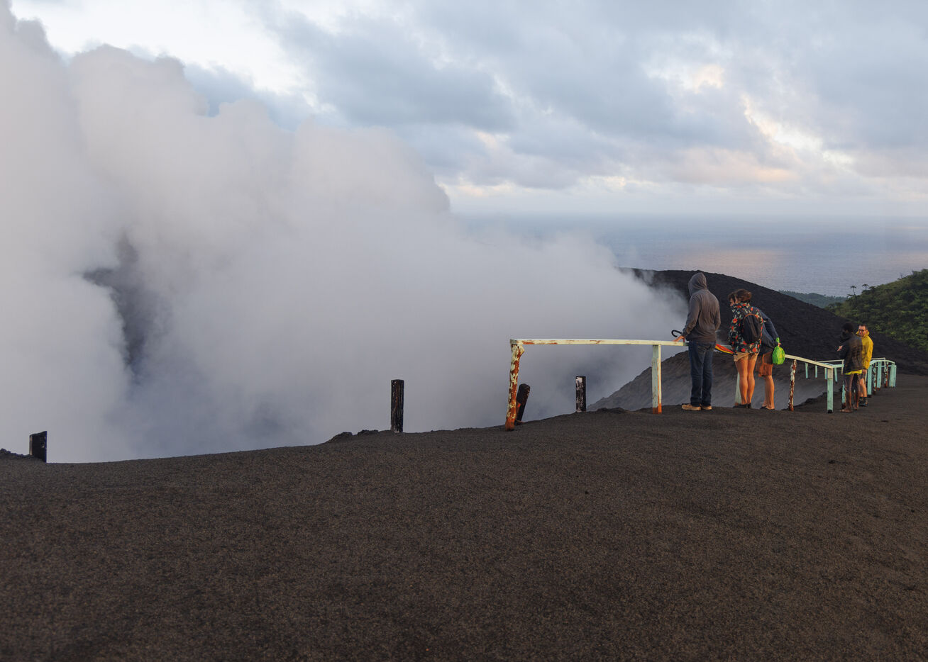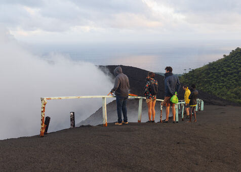 The volcano is located on customary land belonging to the villagers, who manage visits. After an hour's drive in a 4x4 through the subtropical forest, the driver drops visitors off at the foot of the volcano, where they climb a huge wooden staircase to the top. Led by guides and in groups of around ten, the excursions take place either in the morning (departing at 4 a.m.) or at sunset (around 4 p.m.). Visibility depends on the weather, as rain increases the plume of smoke and the danger of gas emissions. It is not uncommon to be hit by puffs of sulphur. Even if visitors cannot see the lava spewing from the crater, they can hear the rumbling and roaring sounds and even feel the earth shaking beneath their feet, with the night offering a glowing spectacle.