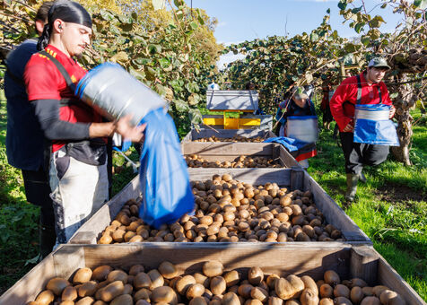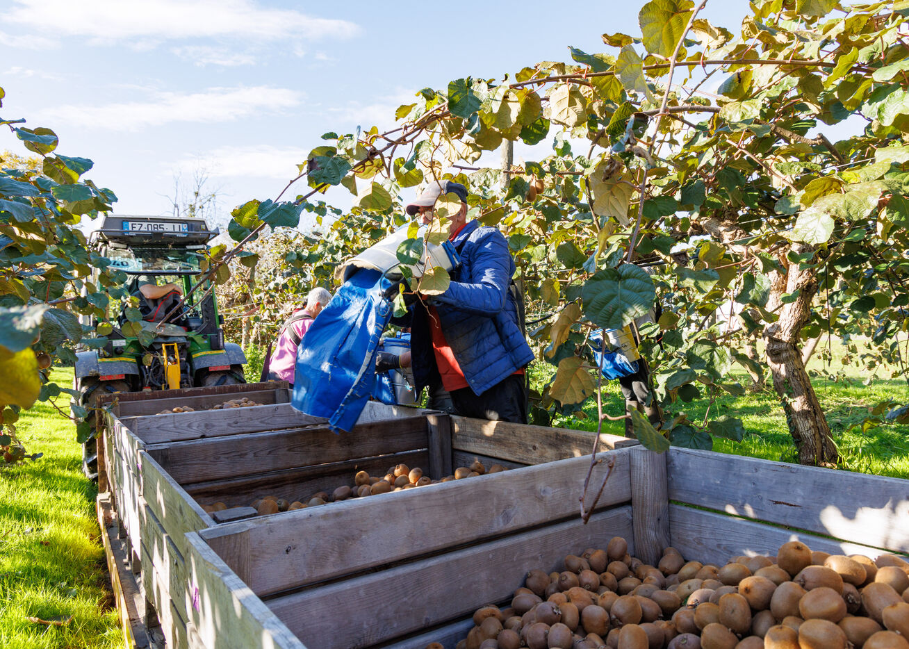 In the heart of the Pays de l'Adour, between Pau and Bayonne, the Adour kiwi first appeared around forty years ago. Its fruity and slightly tart flavour earned it the Label Rouge in 1992 and a Protected Geographical Indication (PGI) in 2009. ‘This double certification guarantees optimal quality,’ explains the Landes-based grower. ‘But production has fallen significantly. Two years ago, I harvested around 250 tonnes. This year, I expect to harvest 120 tonnes.’ This decline has done nothing to dampen the spirits of the seasonal workers on the 16-hectare kiwi farm in the Landes region at the end of October.
