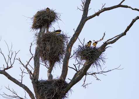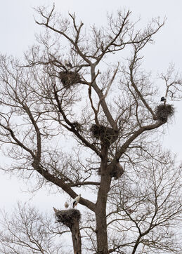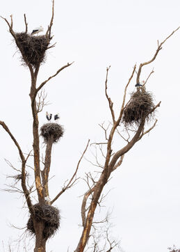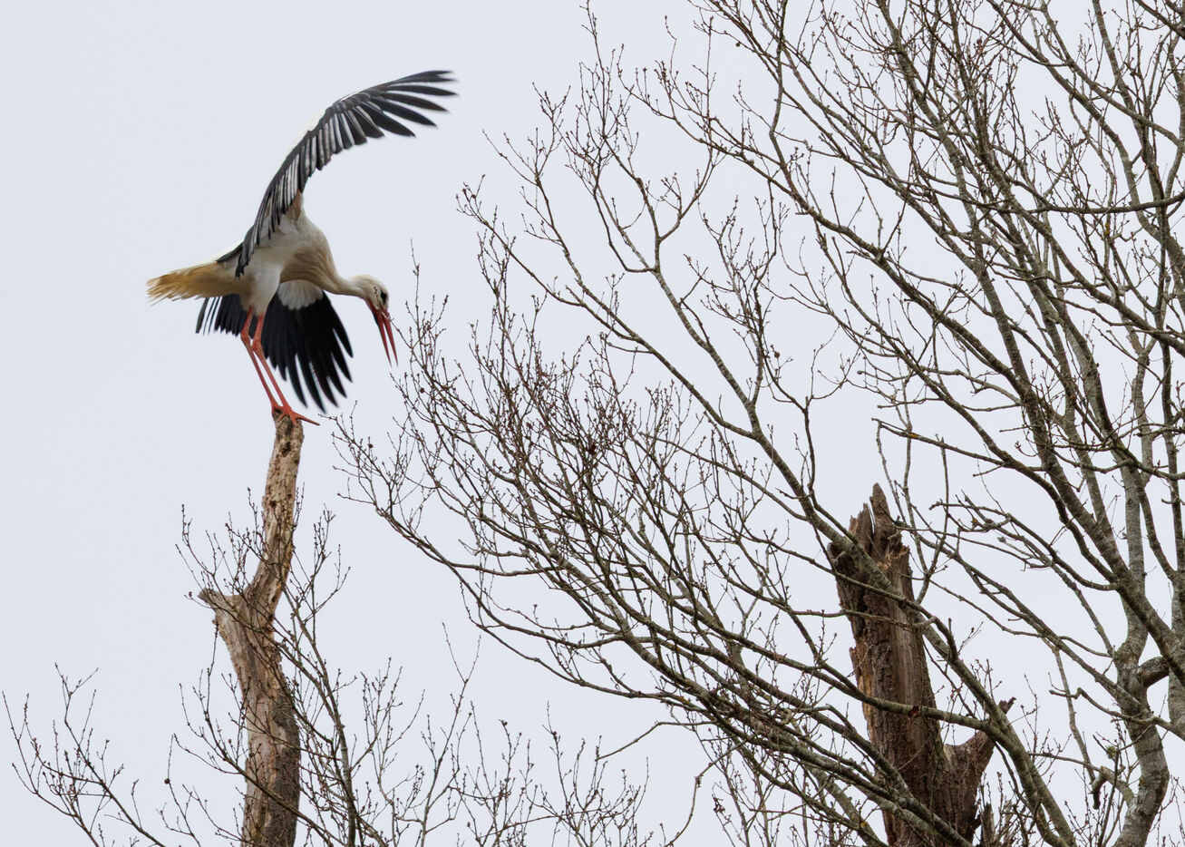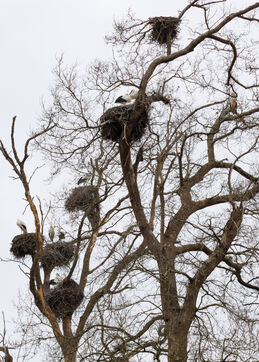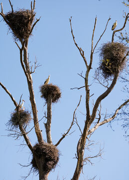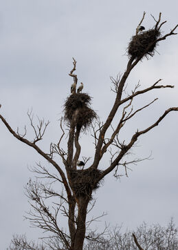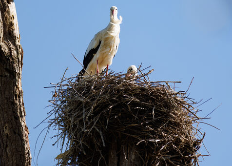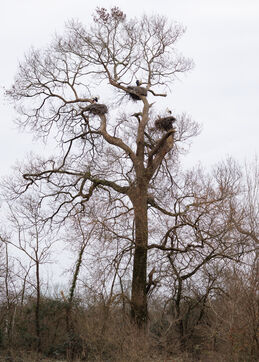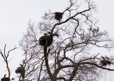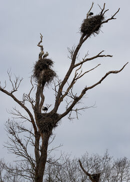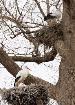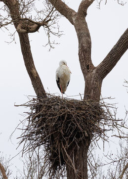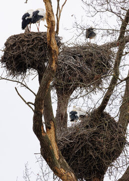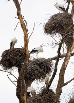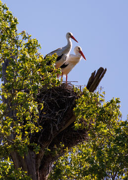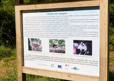 In the heart of the Landes region, the Barthes de l'Adour offer a natural, protected environment unique to this part of south-western France, consisting of farmland that floods when the Adour river rises. The landscape of marshy meadows provides a veritable larder for a wide variety of wildlife, particularly storks, which have made this their home almost all year round. On the road to Saint-Vincent de Paul, in the commune of Candresse, an oak grove was hit by Storm Klaus in January 2009. Some of the oaks did not withstand the violent winds, but others remained standing, allowing the storks to build their nests at the top of the stubborn trees. Today, the colony has more than 20 nests, representing nearly 20% of the total population in the department.