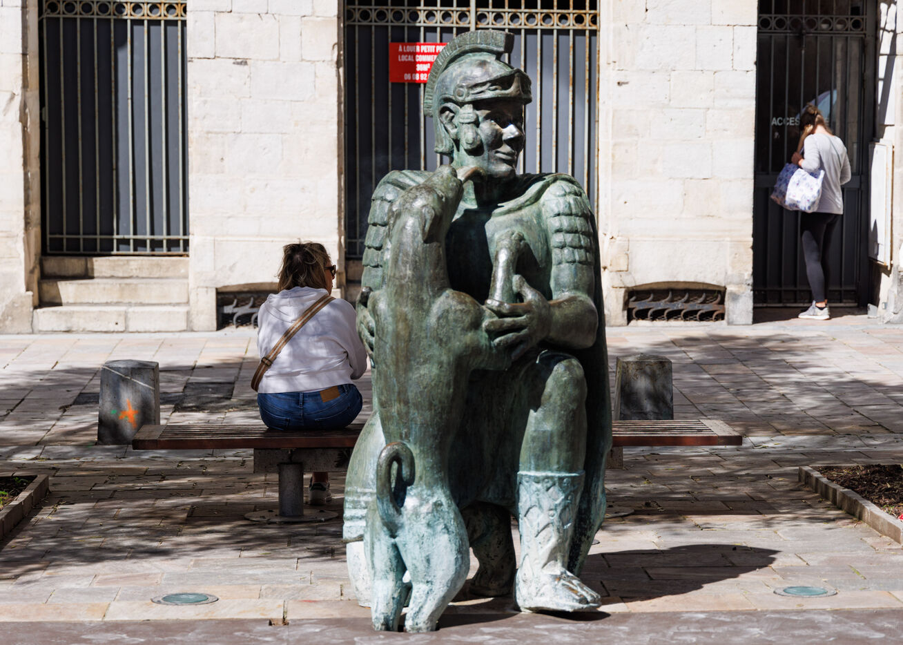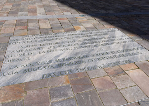 Sur la place de la Cathédrale de Dax se trouve une statue, entourée par trois oliviers centenaires, d’un légionnaire romain avec un chien qui lui saute au cou. Cette statue provient d’une célèbre légende, devenue un mythe fondateur pour le thermalisme de cette petite ville du sud ouest de la France : à l’époque de la Rome antique, un légionnaire et son chien sont en garnison à Dax. Le chien vieillissant, les rhumatismes l’immobilisent, mais le légionnaires doit repartir en mission et abandonne son chien. Pire il le jette dans le fleuve de l’Adour. De retour, il aperçoit au loin son chien courir vers lui l’accueillant avec enthousiasme. Laissé pour mort, le chien échoua sur les bords du fleuve et pataugeât dans la boue. Les bienfaits du péloïde, la boue thermale naturelle et les eaux chaudes lui donnèrent une seconde jeunesse. Le thermalisme était né à Dax.