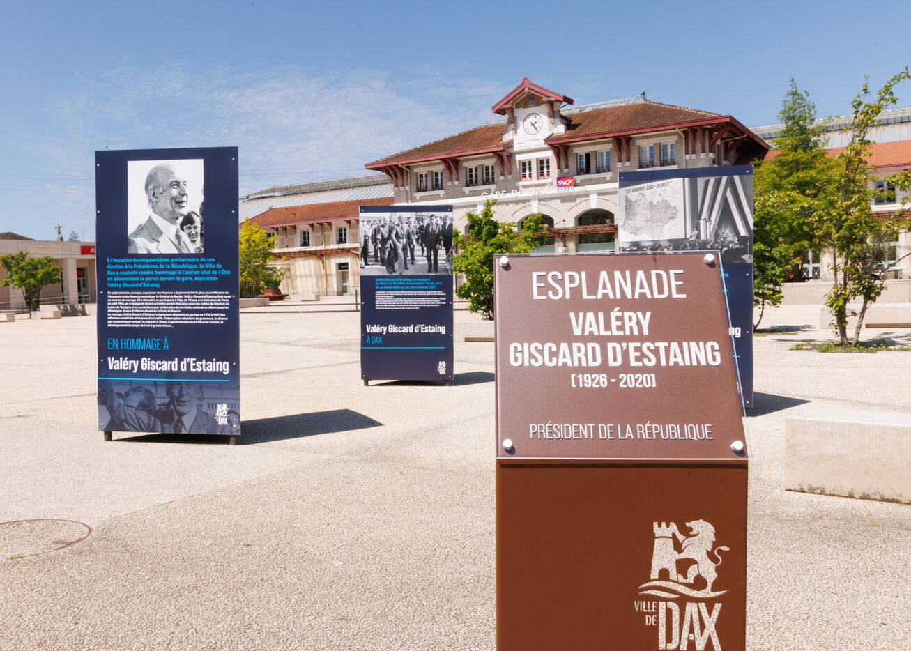 En avril 2025, le parvis de la gare ferroviaire et routière de Dax a été baptisé esplanade Valéry Giscard d’Estaing. Le choix du nom de l’ancien président de la Rapublique française à la tête dyu pays entre 1974 et 1981 a été attribué par un vote du conseil municipal de la ville des Landes, région du sud ouest de la France.