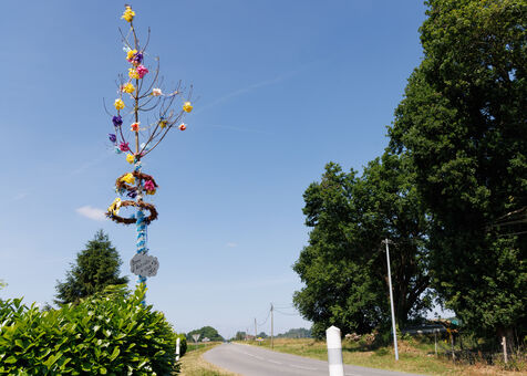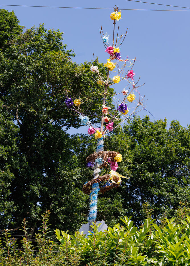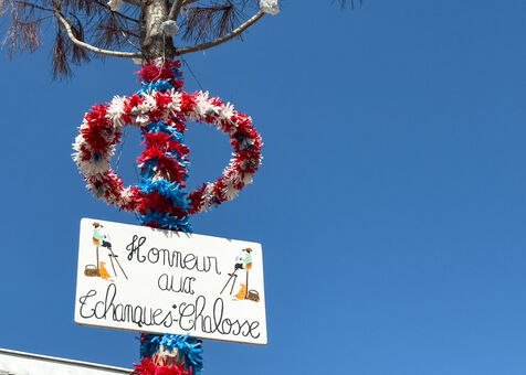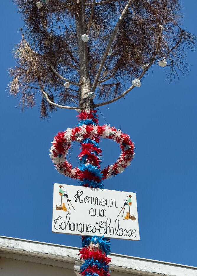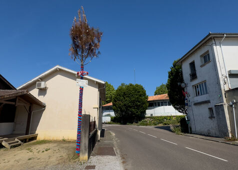 A mayade (or maïade or maillade) is the local name for a festival in southwestern France, specifically in the Landes de Gascogne region. The mayade consists of erecting a young pine tree decorated in honor of an individual or group of individuals. The trunk is decorated halfway up with multicolored ribbons (tricolors in particular for elected officials), crowns, flags, shields, or signs bearing the inscription “Honor to...”. The tradition of the mayade is one of many customs dedicated to conviviality. On May 1, it is customary to decorate the homes of loved ones (friends, neighbors, newlyweds, elected officials) with flowering trees. The “mai” (decorated maritime pine tree) remains a unique work of art, prepared in complete secrecy from the person for whom it is intended. Planted during the night of April 30 to May 1, it provides an opportunity for a convivial meal. But there are requests throughout the year for birthdays, retirements, welcoming new neighbors, and more. Planting a mai is an opportunity to get together and celebrate the event by sharing a convivial moment, thereby strengthening social ties. The date depends on the event being celebrated. The practice of mayade is listed in the Inventory of Intangible Cultural Heritage in France.